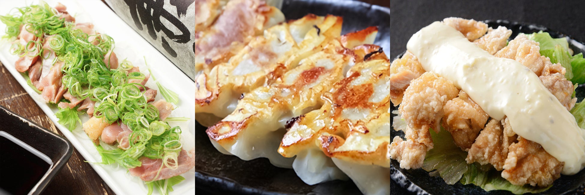 炭火焼鳥は、職人が仕込みから串打ち、焼きまで一切手抜きなしの本格焼鳥が味わえます。さらに、多くのお客様にご注文いただいております「炎の手羽揚げ」は当店の一番人気メニューで、弊社職人が全国の手羽揚げを食べ歩き、大阪人の肥えた舌に合うよう研究・そして開発した、究極の手羽揚げです。