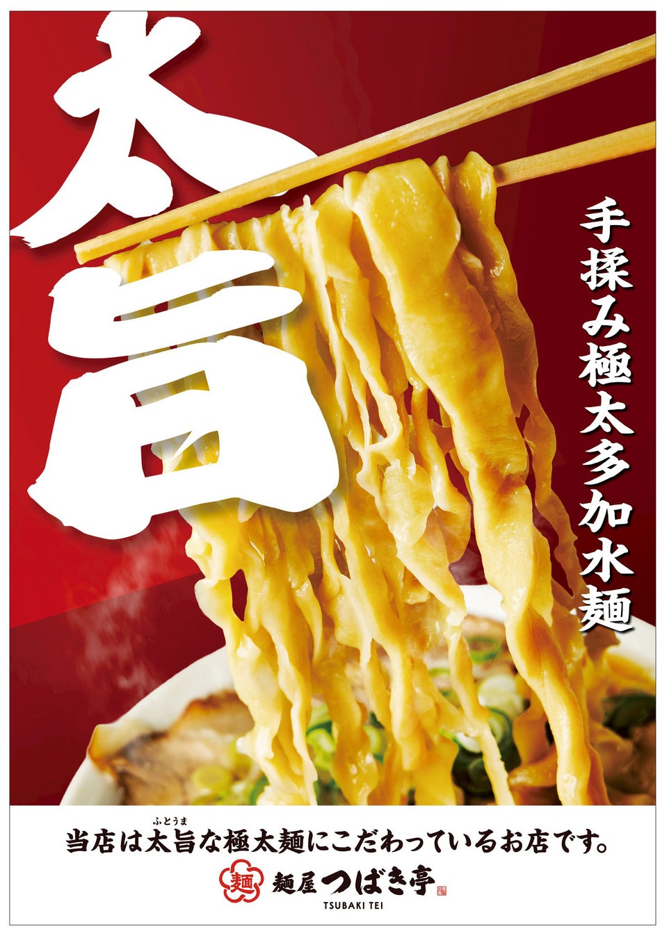 『麺屋つばき亭』では、圧倒的な「太さ」と「旨さ」を体験できる“太旨麺”に加え、お得なサービスを提供。