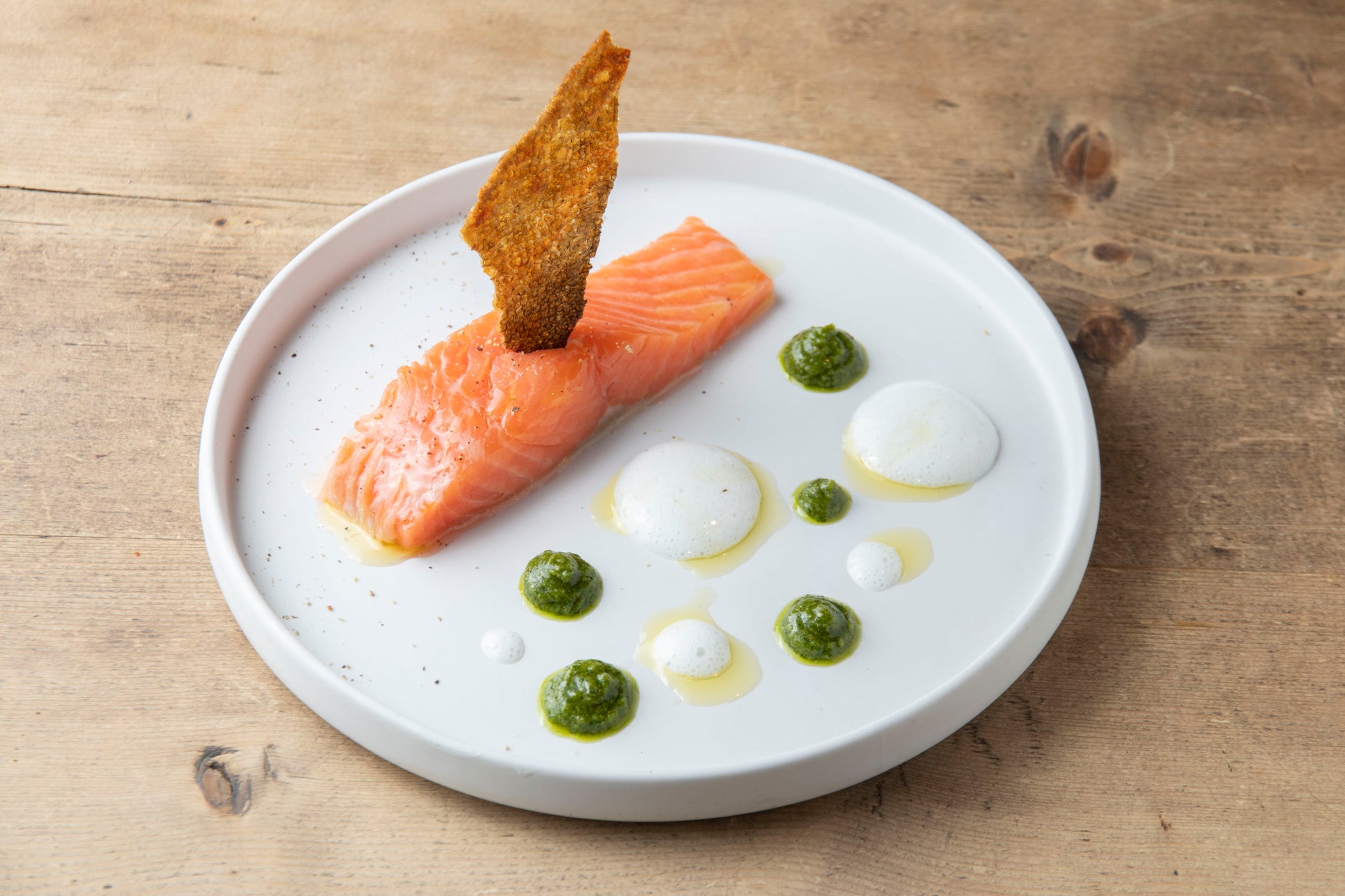 メニュー名:岩手県岩姫サーモンのミキュイディルのサルサヴェルデ