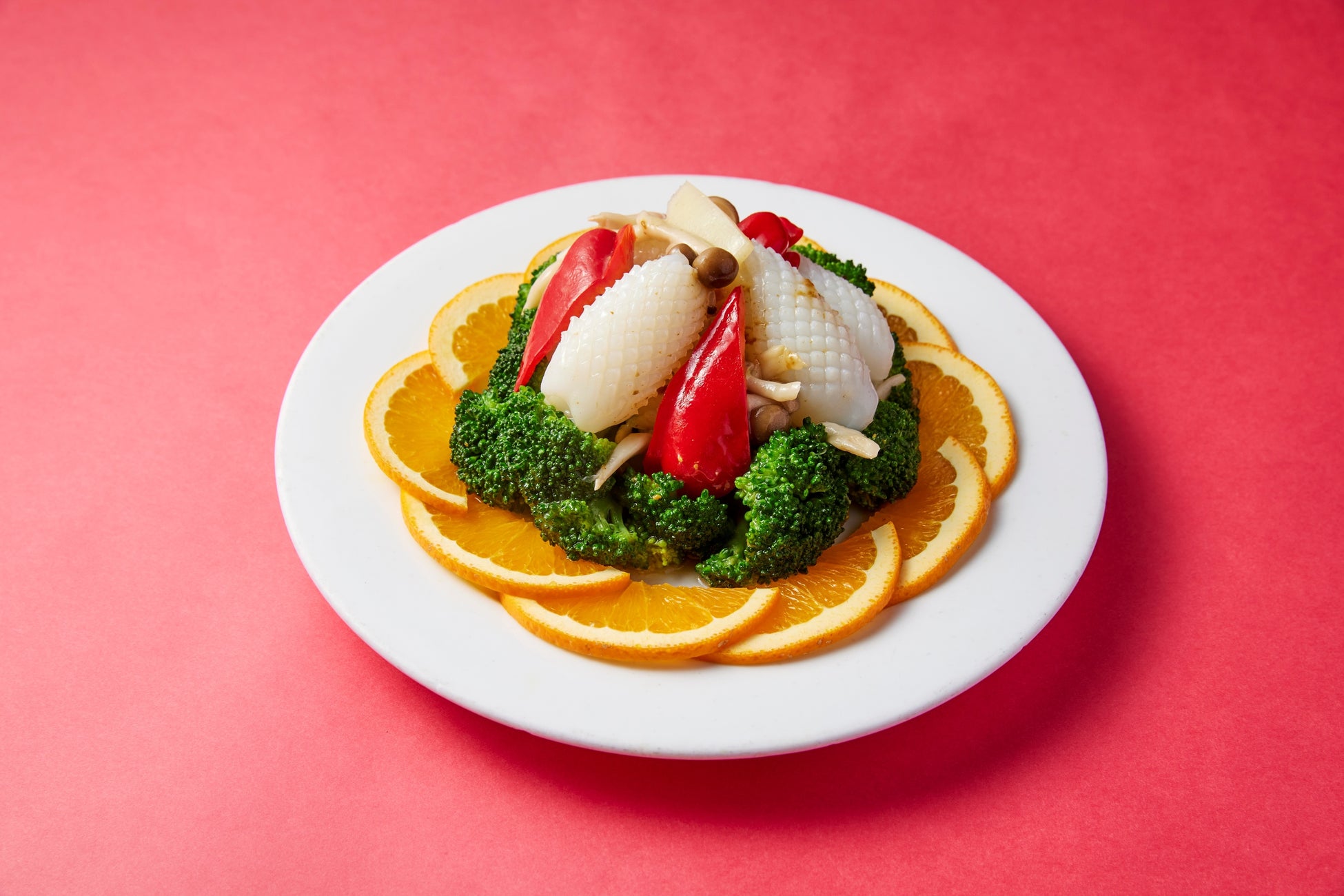 メニュー名:宮城県産カキ辛味噌のブロッコリーとイカ炒め