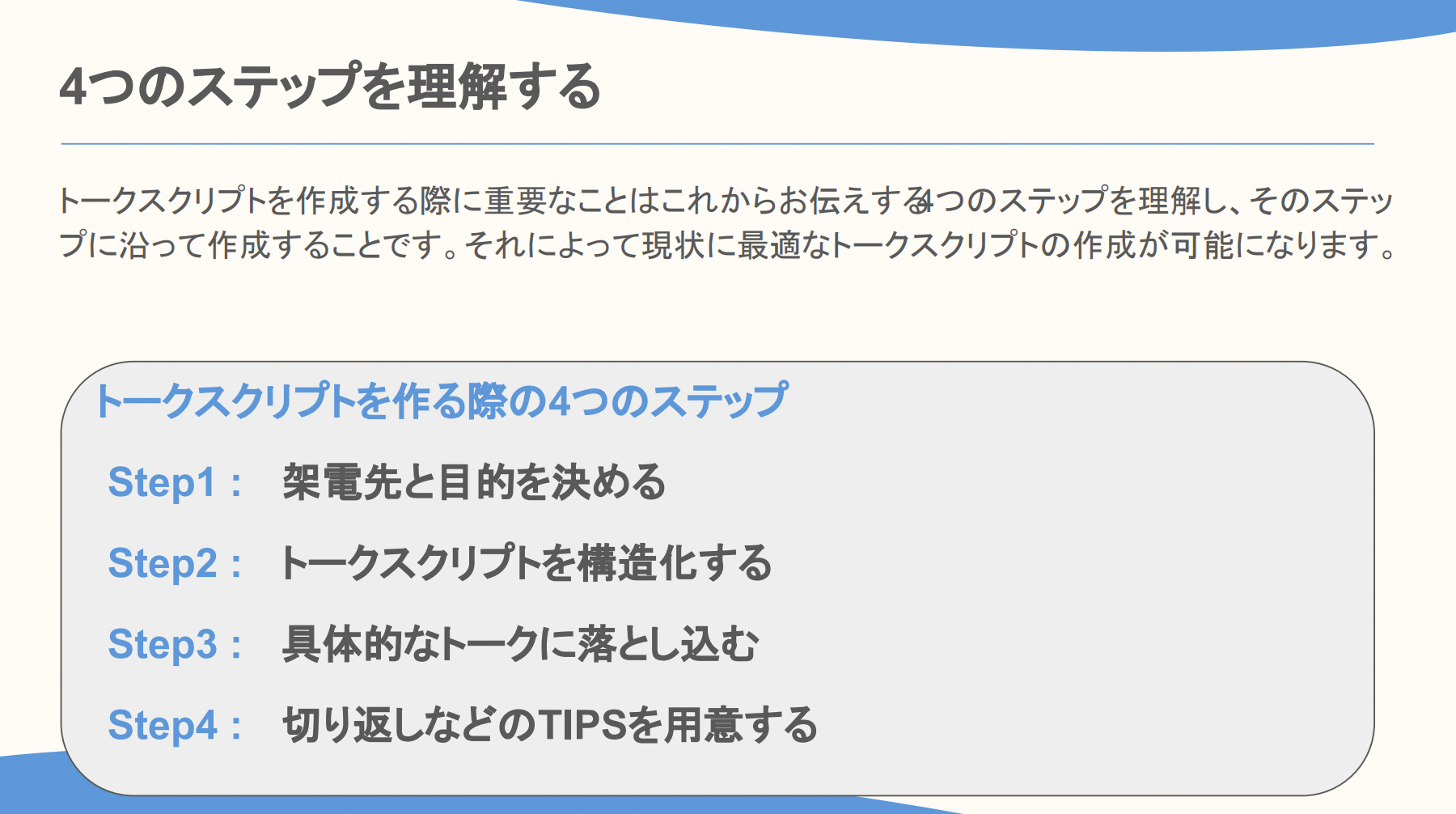 - 「重要なのは4つのステップ!実践的トークスクリプトの作り方」について