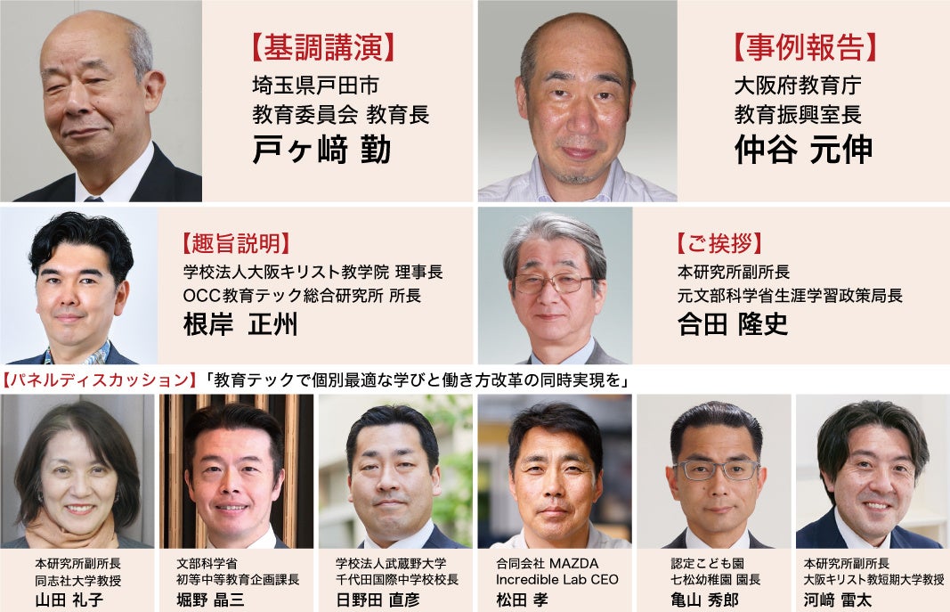 OCC教育テック総合研究所新設後、第1回目となる本フォーラムでは、教育界のオピニオンリーダーが勢ぞろいし、講演およびパネルディスカッションにより教育×テクノロジーの現在地や将来像、変革へのヒントや、新たな取り組み事例など、最新の教育テックについて議論します。