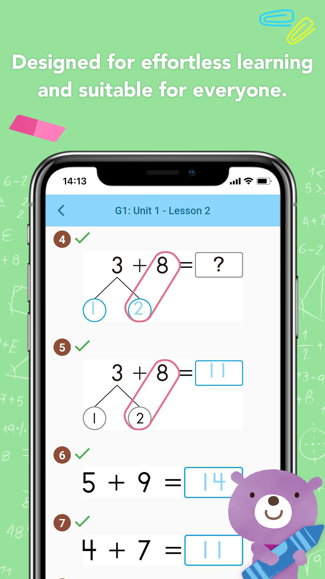 今回のバージョンでは、幼稚園から小学2年生までの算数を対象とした500問以上の問題を含む全てのレッスンを無料で提供します。