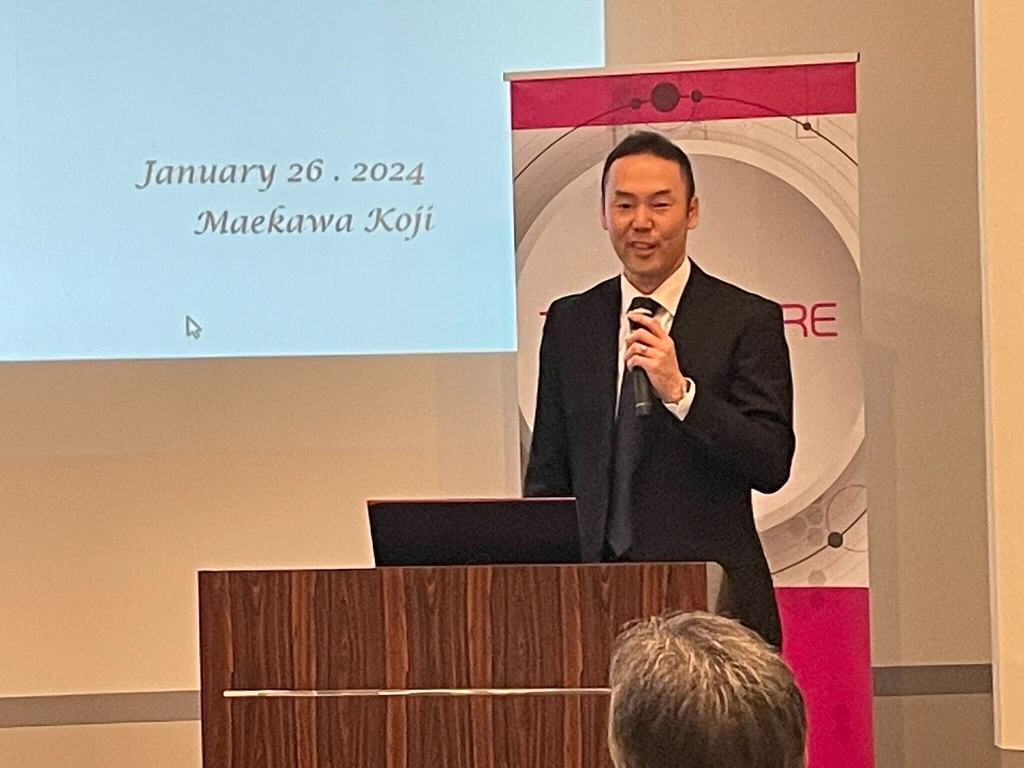 当日は、一次審査を通過したファイナリスト企業7社による事業プランのプレゼンテーションが行われ、弊社からは共同創業者である前川幸士がLCIについてプレゼンしました。