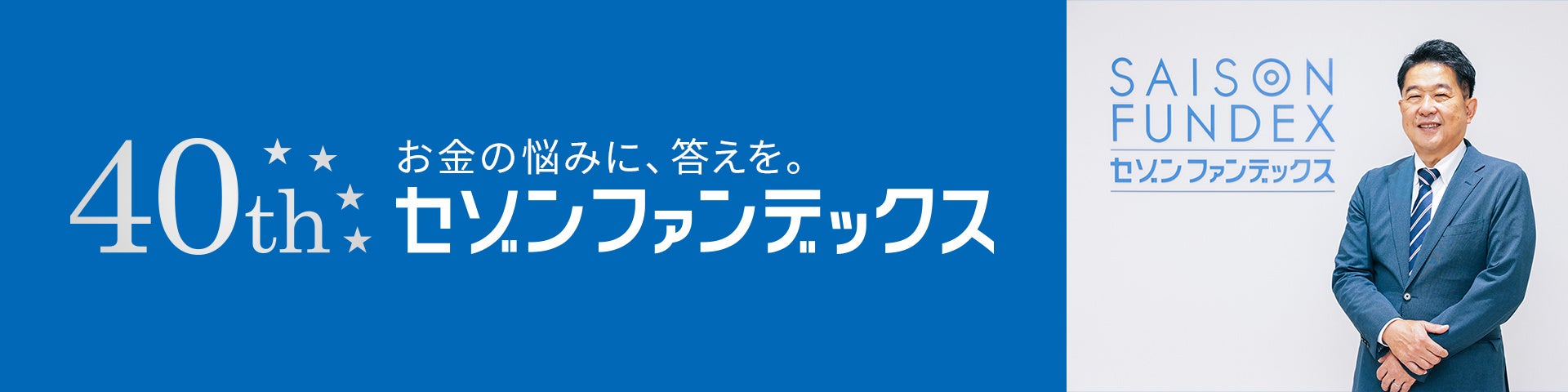 セゾンファンデックスは、東証プライム上場企業クレディセゾン(証券コード8253)が100%出資するグループ会社です。クレディセゾングループが提供する安心のブランド力を背景に様々な資金ニーズに対応し、創業40周年を迎えました。