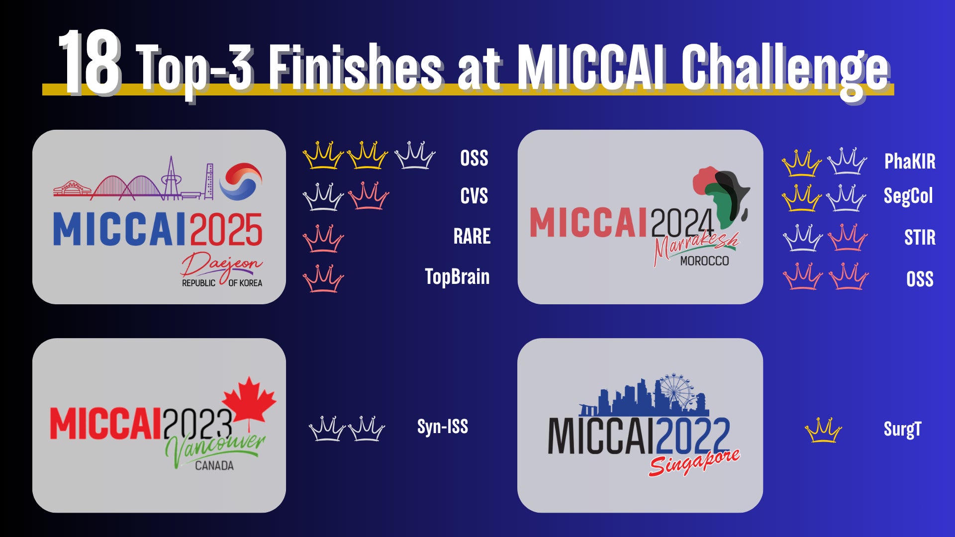 医用画像の世界的トップカンファレンスMICCAI 2025の画像認識コンペティションにて合計7タスクで3位以内に入賞しました