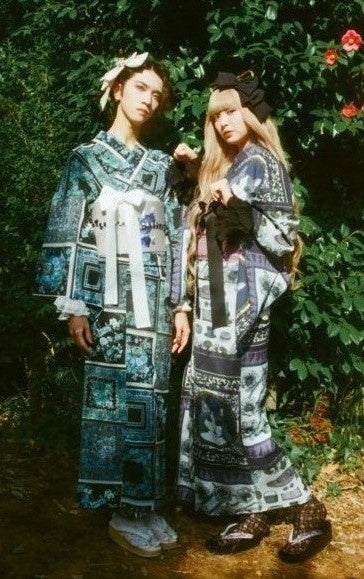 個性が光る洋風ミックスの柄の浴衣で揃え、浴衣を羽織るという新発想の着こなしも取り入れた