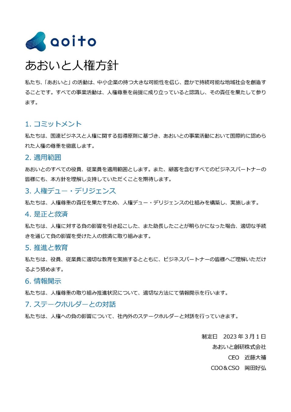 あおいと創研株式会社は、この度、「あおいと人権方針」を制定いたしました。