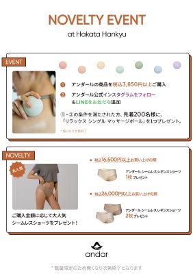 "Stretch Your Life"をブランドメッセージとして掲げ、アクティブで健康的なライフスタイルを提案をするアスレジャーブランド「andar(アンダール)」は博多阪急にて10月23日(水)~10月29日(火)の期間限定でポップアップストアを開催いたします。