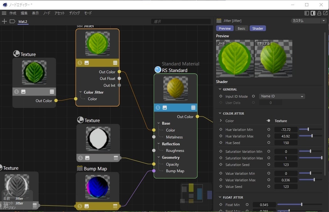 新しいジッターノードを使えば、同じマテリアルを適用した多数のオブジェクトに、自動的にカラーバリエーションを適用できます。葉っぱ、岩、グミの詰まったメイソンジャー、熟し具合の異なる美味しいアボカドの木箱などを作成するのに最適です。ジッターノードは、現在ほとんどのDCC(Cinema 4D、ZBrush、3dsmax、Maya、Houdini、Katana)で使用できます。