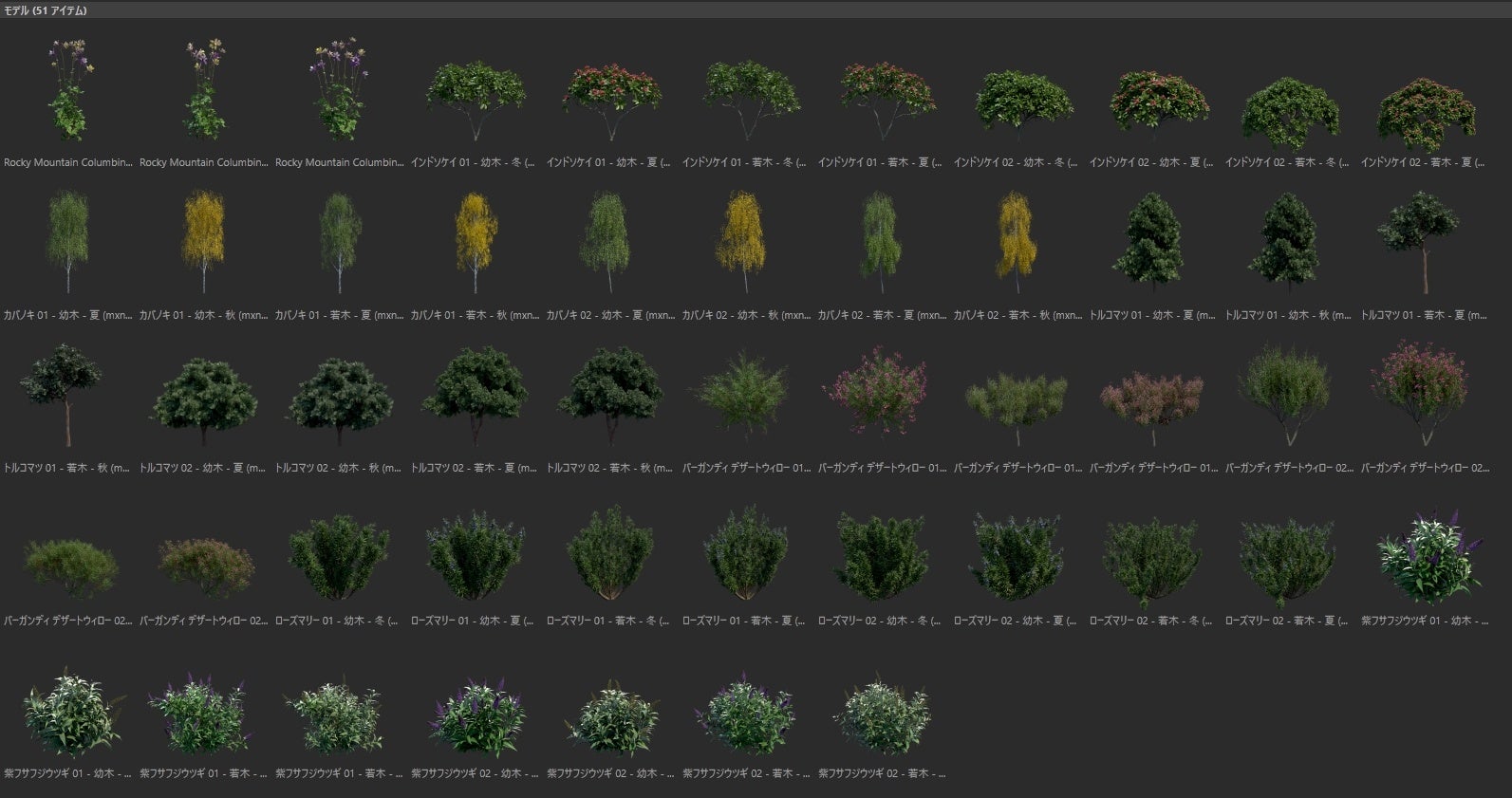 さらにMaxonは、建築ビジュアライゼーション、ビジュアルエフェクトショット、イラストレーションに最適な51種類の高品質植物モデルを収録したLaubwerk植物パック第2弾を発表しました。ローズマリー、マツ、シラカバ、ヤナギの木は、それぞれ様々な年齢、季節、形状のバリエーションがあり、あなたのレンダリングでユニークな存在になります。これらの植物アセットはすべて、Cinema 4DまたはMaxon Oneのサブスクリプションをお持ちのユーザーが利用できます。