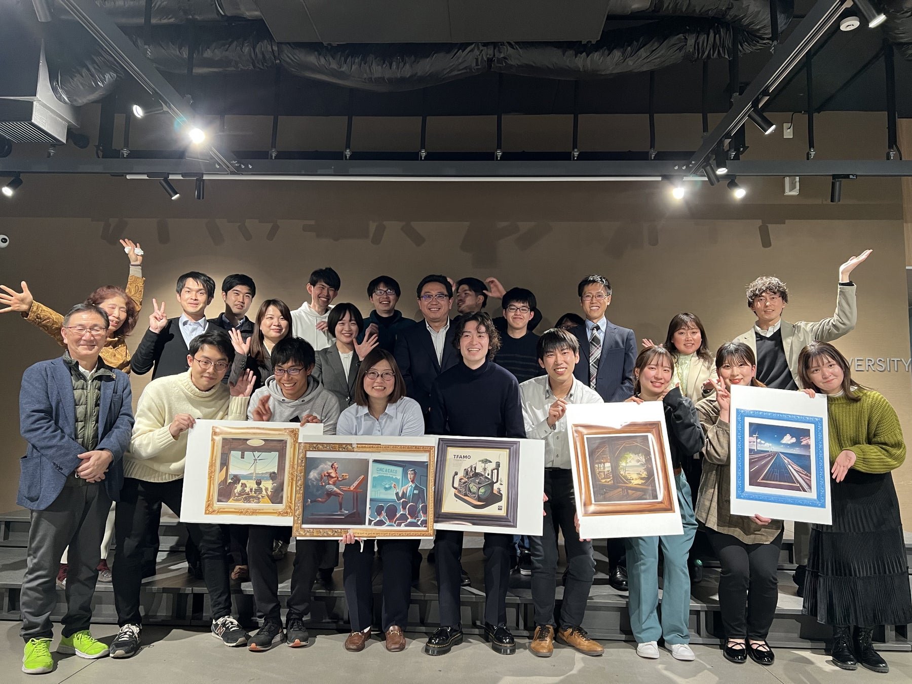 チームでのワークでは、個人が想像する広島の未来から、共有/統合することでチームの広島の未来へと発展させ、未来の景色のワンシーンを表現するため、画像生成AIを用いて「画」という作品に仕上げて参加者全員で共有しました。また、広島県カーボン・サーキュラー・エコノミー推進協議会 会長も務められる広島大学大学院先進理工系科学研究科 市川貴之教授からも、今後の参加者の次の活動に対するアドバイスなど、ご講評を頂きました。