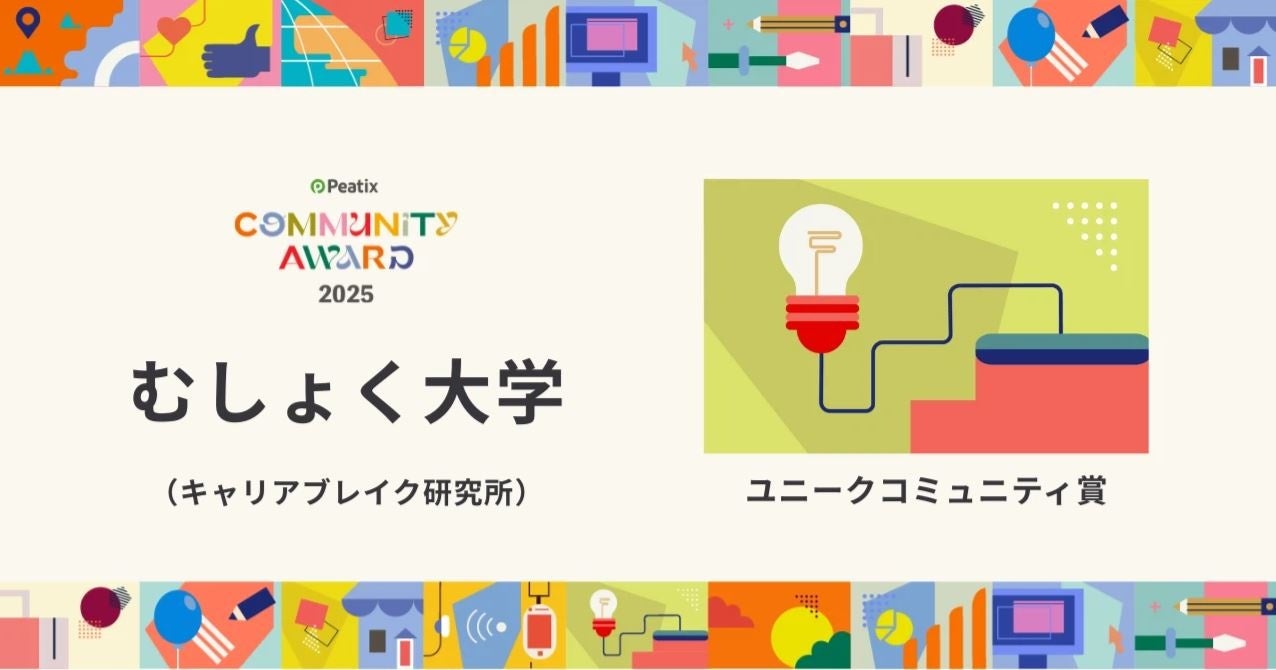 人生に一時的なブレイクを取り入れる「キャリアブレイク」という考え方を研究・発信している一般社団法人キャリアブレイク研究所(所在地:神戸市垂水区、代表理事:北野貴大、以下:同研究所)は、運営するコミュニティ「むしょく大学」が5月28日(水) SCC千駄ヶ谷にて開催された「Peatix コミュニティアワード2025」において、ユニークコミュニティ賞を受賞いたしました。