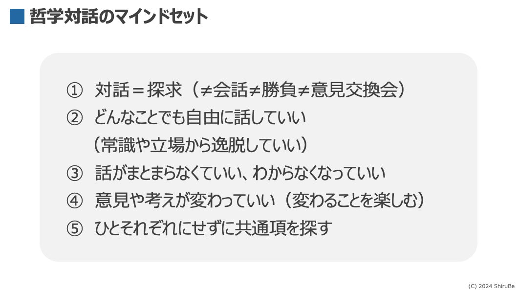 ※1:哲学対話とは、哲学者がファシリテートしながらテーマについて複数人で自由に対話し、ひとりひとりの前提や文脈を分かち合い、物事に対する見方/考え方をアップデートしていく対話手法。