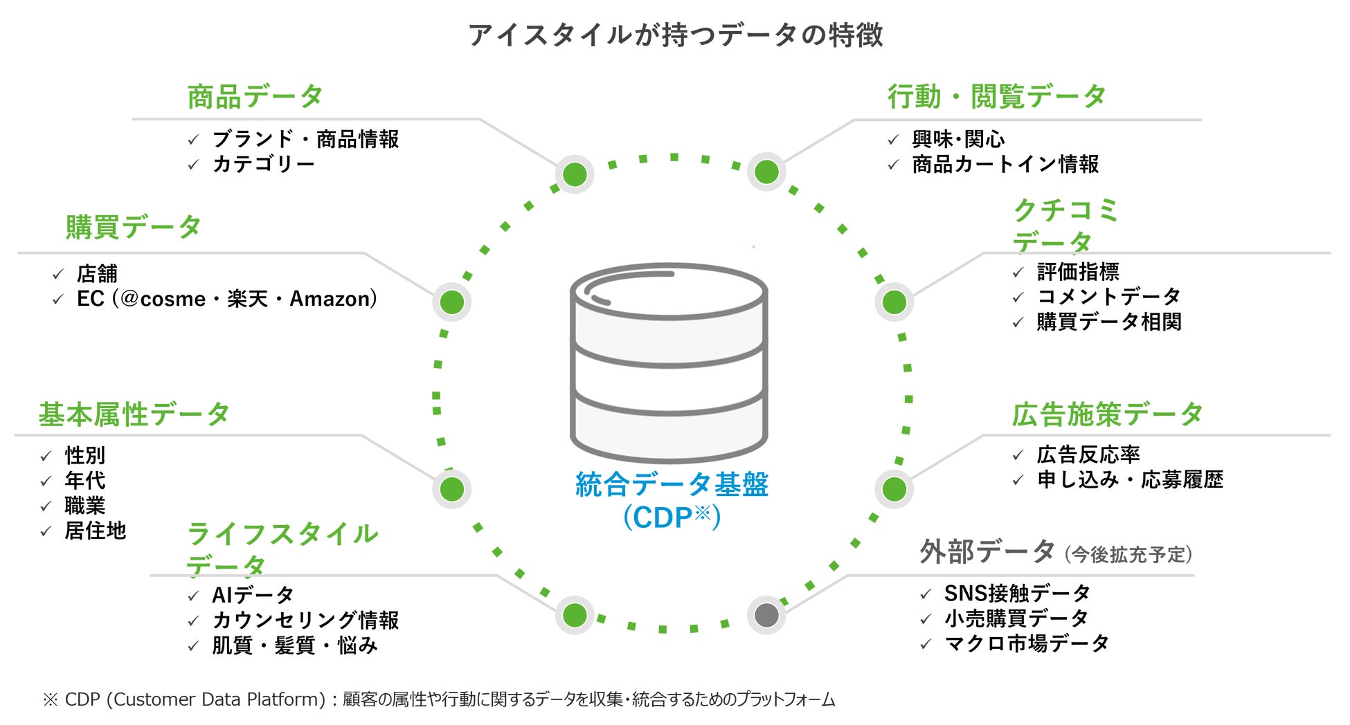 アイスタイルは、メディア・EC・店舗から成る日本最大のビューティープラットフォーム「@cosme」の運営を通じて生活者とブランドの出会いを生み出してまいりました。今後は、それらの事業から日々創出される膨大なデータを蓄積した唯一無二のデータベースである@cosmeのCDPをフル活用し、クライアントの皆さまとの共創によって、美容業界のデータドリブンな意志決定をさらに加速させると共に業界活性に貢献してまいります。