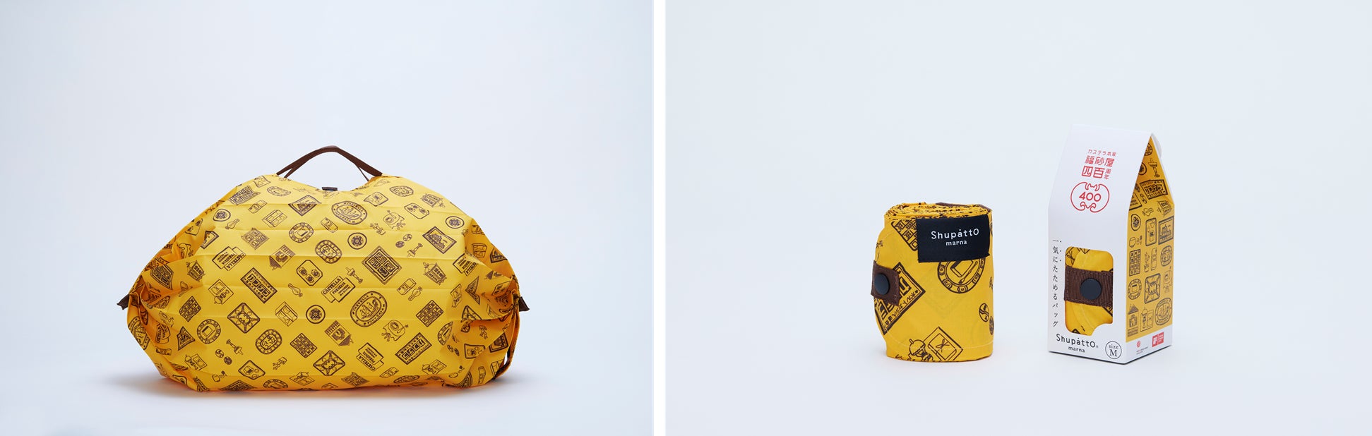 福砂屋は、1624(寛永元年甲子)年に長崎県で創業し、本年で400周年を迎えます。メモリアルイヤーを記念して、株式会社近澤レース店が展開する老舗レースブランド「近沢レース店」と、株式会社マーナが展開する一気にたためるエコバッグ「Shupatto(シュパット)」とのコラボレーショングッズを数量限定で販売します。