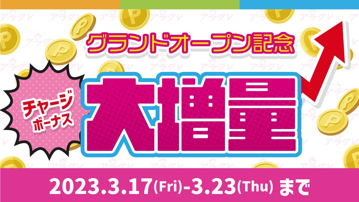 株式会社ワイドレジャー(福岡県小郡市/代表取締役社長 菊池 太一郎)は、本日2023年3月17日(金)にオンラインクレーンゲーム「アラクレ」(ARACRE)をグランドオープンいたします。グランドオープンを記念して各種イベントを開催!