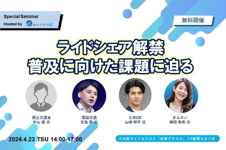 国交省、電脳交通、S.RIDE、オムロンが登壇「ライドシェア解禁 普及に向けた課題に迫る」2024年4月23日(火)開催