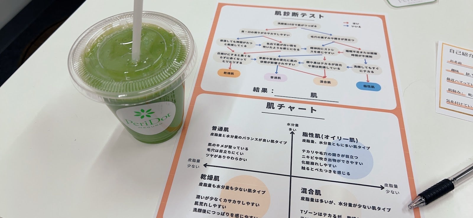 簡単な肌診断テストを実施してご自身の肌タイプを分析し、洗顔の仕方や自分の肌タイプに合った洗顔料をお店のサンプルを試しながら選んでいきます。