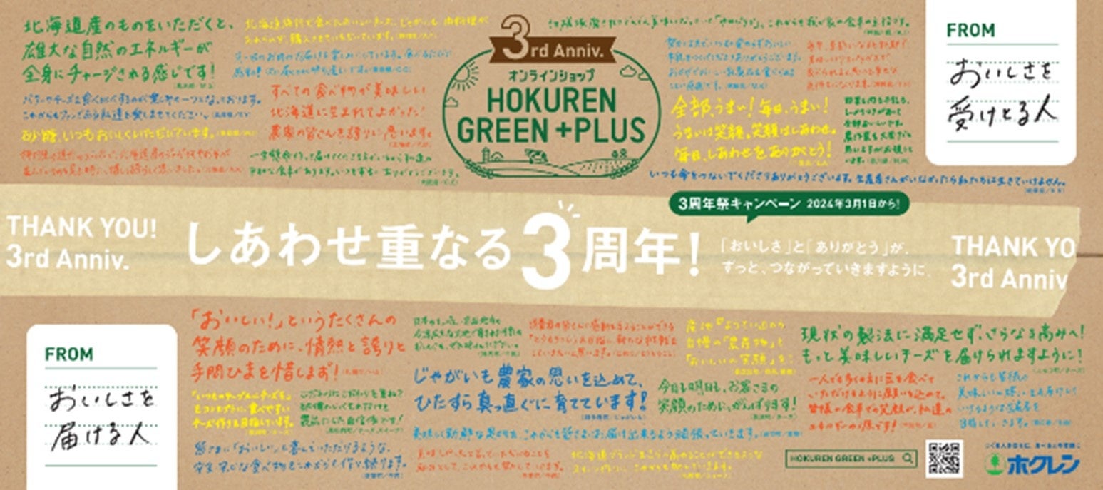 「オンラインショップHOKUREN GREEN +PLUS」 3周年祭の実施について