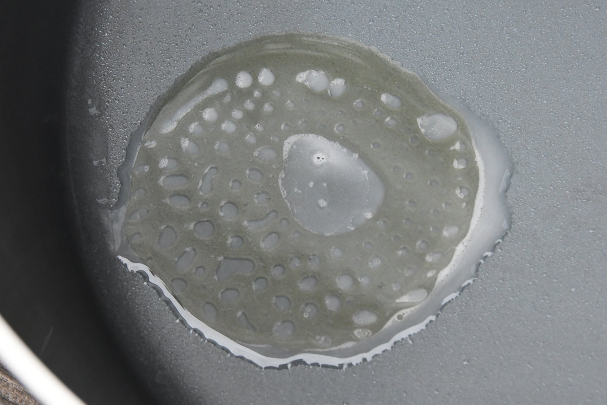 ※乳化現象とごま油が鍋肌から浮き上がっていることが確認できます。