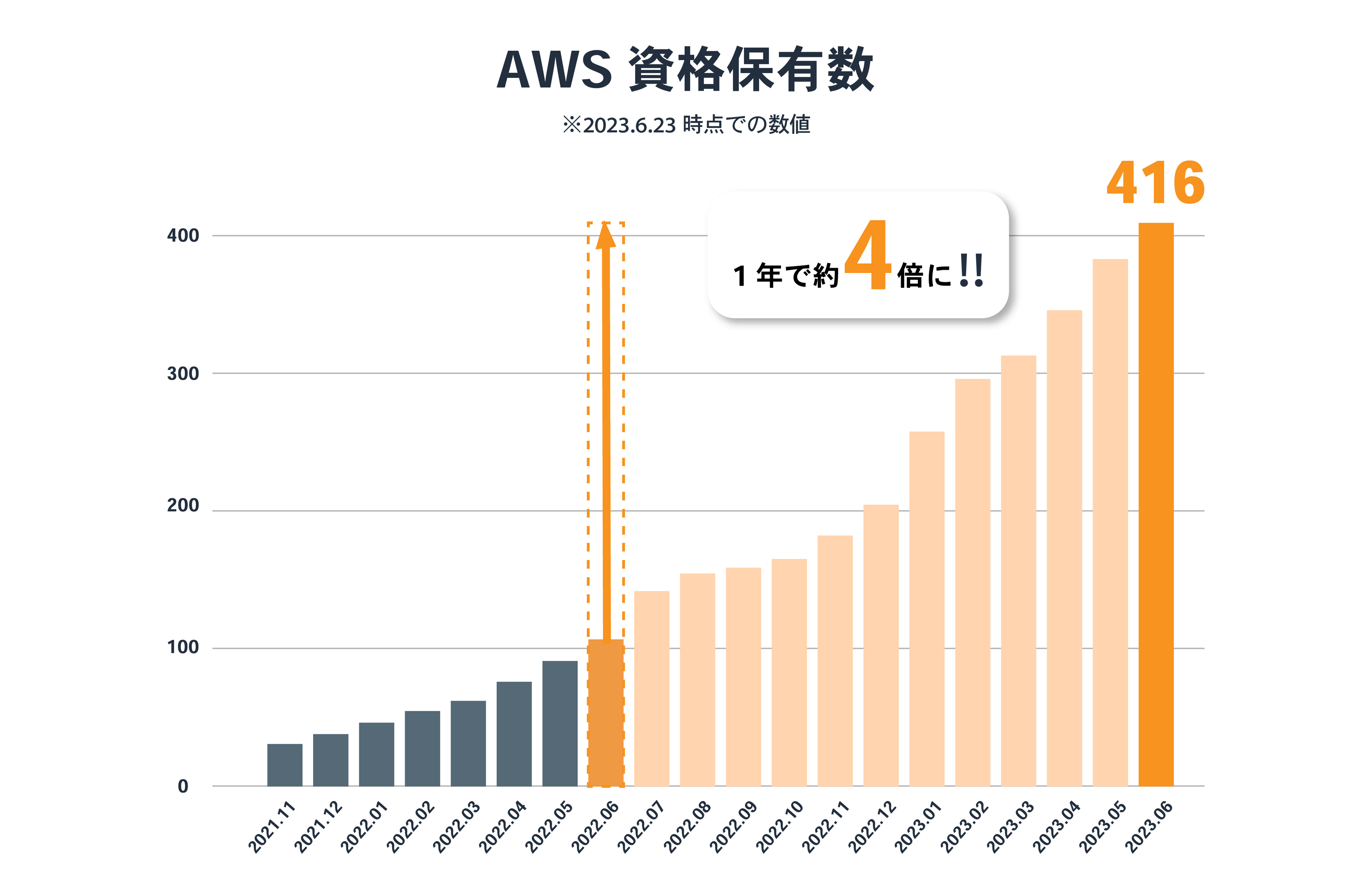 技術強化領域としてAWSにフォーカスし、認定資格取得数増加へ向けた施策を始めたのは、2021年の11月です。