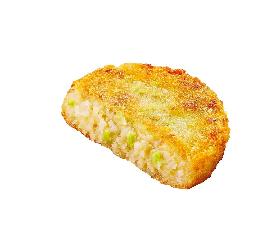 北海道の野菜のおいしさをもっと知っていただきたいという想いから、北海道産のじゃがいもと、北海道産のたまねぎ・えだまめそれぞれを掛け合わせ、よりじゃがいもの味わいを引き立たせるハッシュドポテトに仕上げました。また、じゃがいもをダイスカットにし、粒感を残すことで、素材本来の素朴な味わいを最大限にお楽しみいただけます。