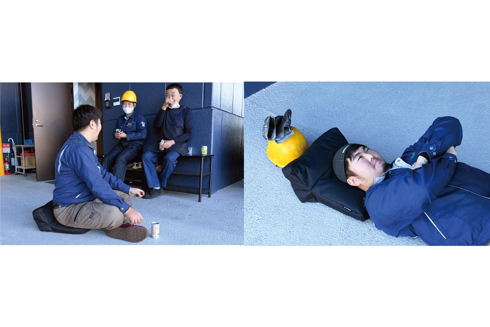 本来、これらの仕事は体力が必要な仕事で、休憩時間はより快適に過ごすべきだと考えられます。しかしながら屋外や工場では、スペースが限られているため、椅子がなく室内のように快適に休憩することができません。