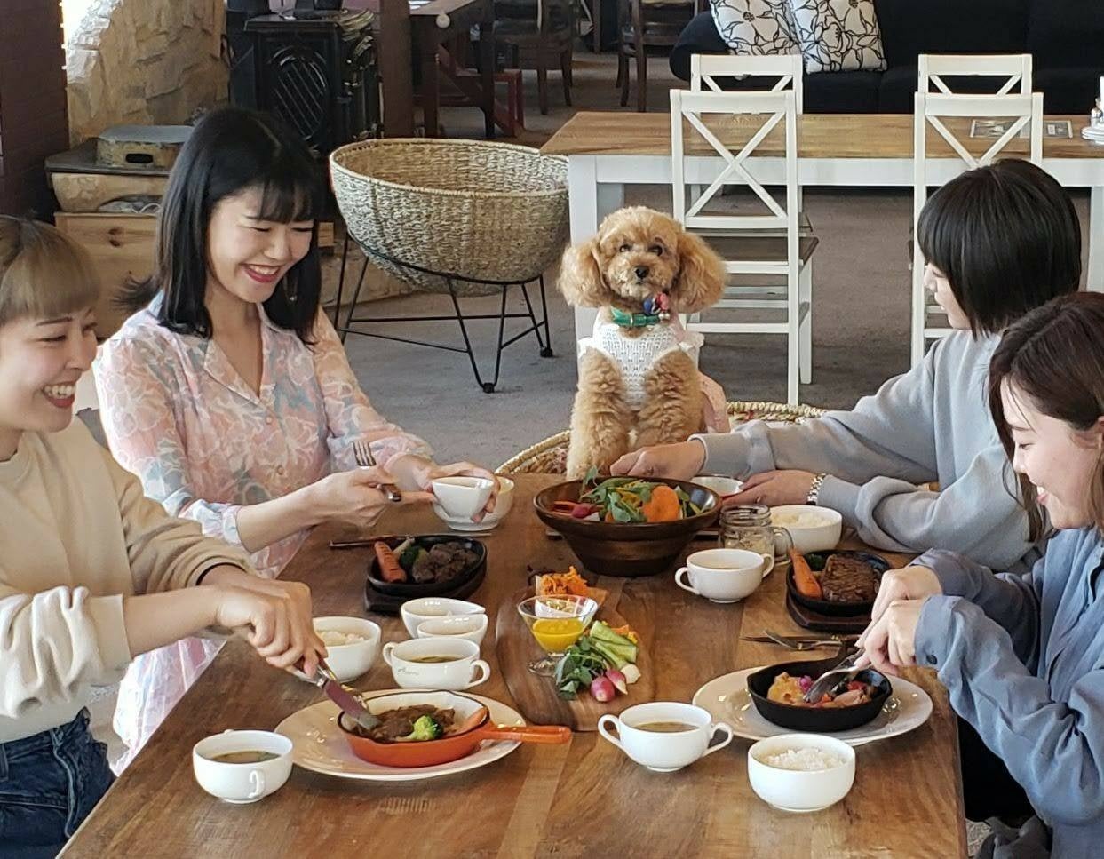 また、農業収穫体験やイチゴ狩り・ブルーベリー狩り、山羊牧場でエサやり体験、自社農園58ロハスファームで収穫された野菜を使ったビュッフェレストラン、いちごスイーツメニューが豊富なカフェなども全てわんちゃんと一緒に入れます。