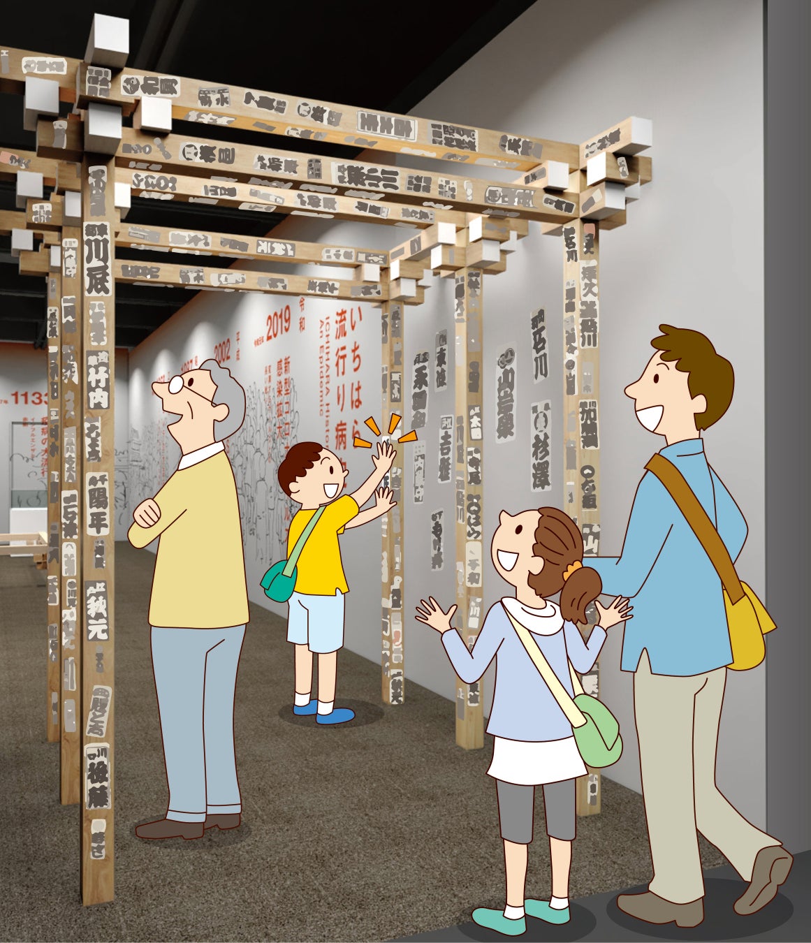 展示室の入口の寺社フレームに千社札を貼って、博物館に来た証を残そう!