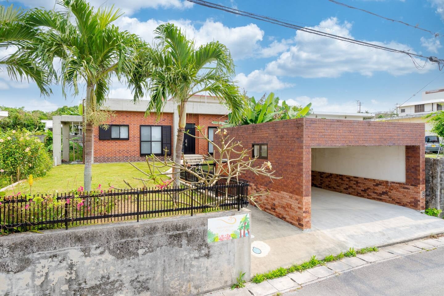 ANAインターコンチネンタルやマエサトビーチも車で約10分と、観光にも便利な立地。庭付きの一軒家は、ファミリーやグループでの滞在にぴったり。
