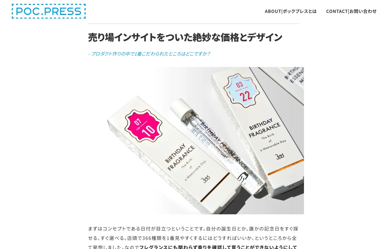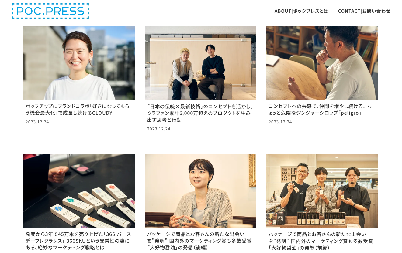 ブランドの立ち上げフェーズにおける試行錯誤や知見は、これまであまりオープンにされることはありませんでした。また、多くのブランディングやマーケティングに関する書籍は、抽象的であることが多く、大規模なマスブランドを対象にしているため、アーリーフェーズのブランドにとってはあまり参考にならないことが多いのが現状です。POC.PRESSでは、ファンに支持される強いブランドへの深いインタビューを通じて、ブランド立ち上げ期における具体的な知見を記事にして共有します。今後は、インタビューに加えてブランド立ち上げに役立つ様々なコンテンツも提供していく予定です。現在、すべての記事は無料でご覧いただけます。詳細はPOC.PRESS(https://press.poc-inc.jp)、POC.PRESS on note(https://note.com/poc_press)でご確認いただけます。