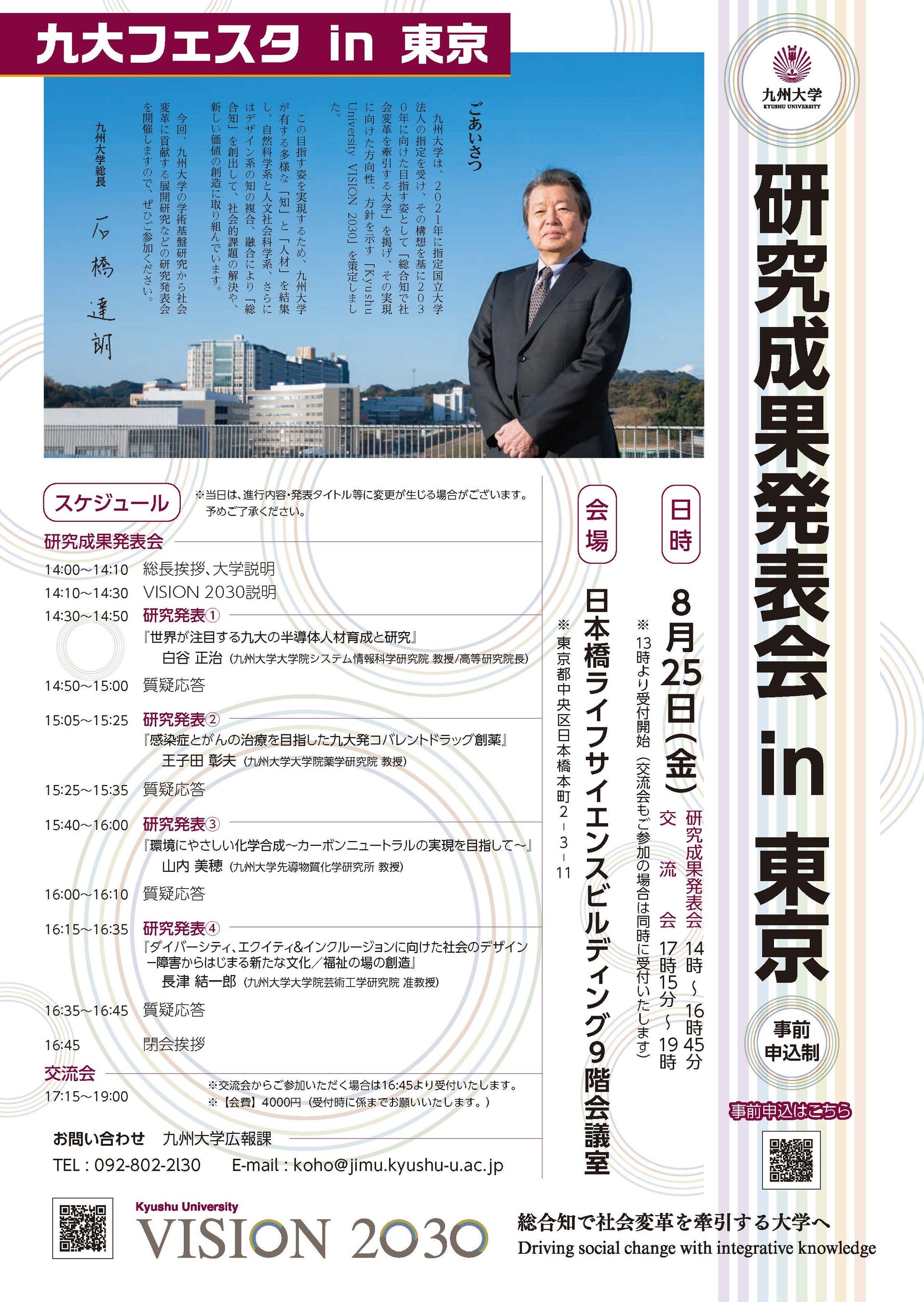 ※「九州大学がやってきた!in 東京」の詳細につきましては以下のURL、および添付のチラシよりご参