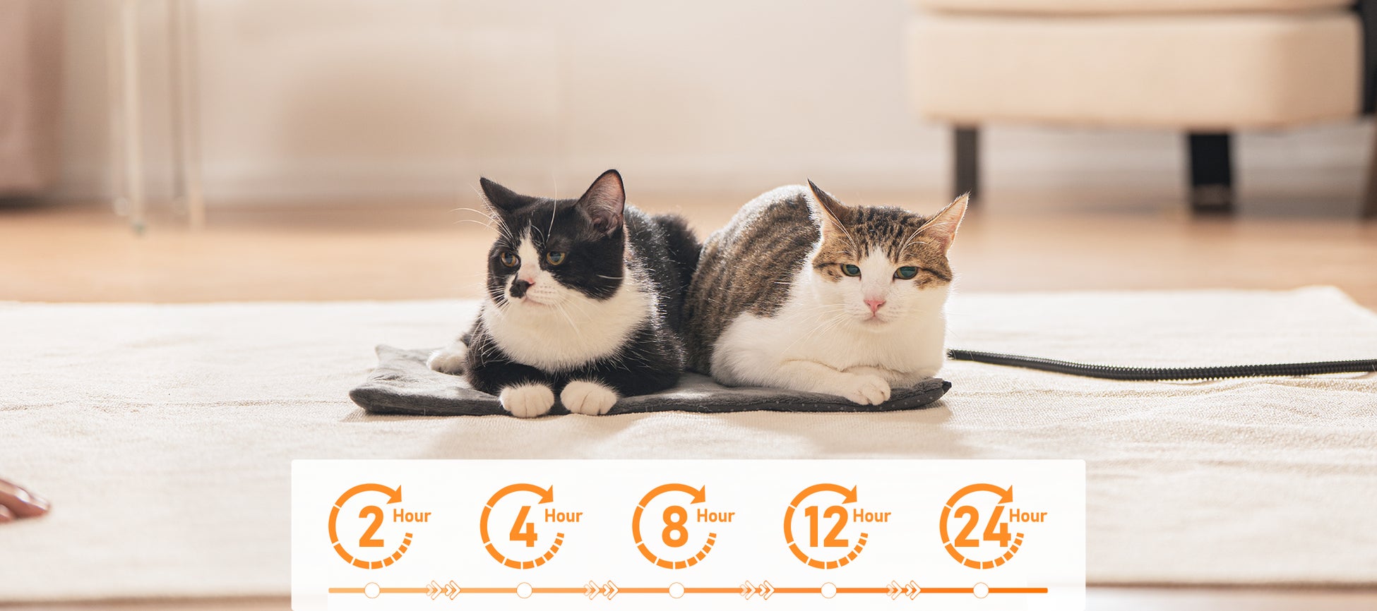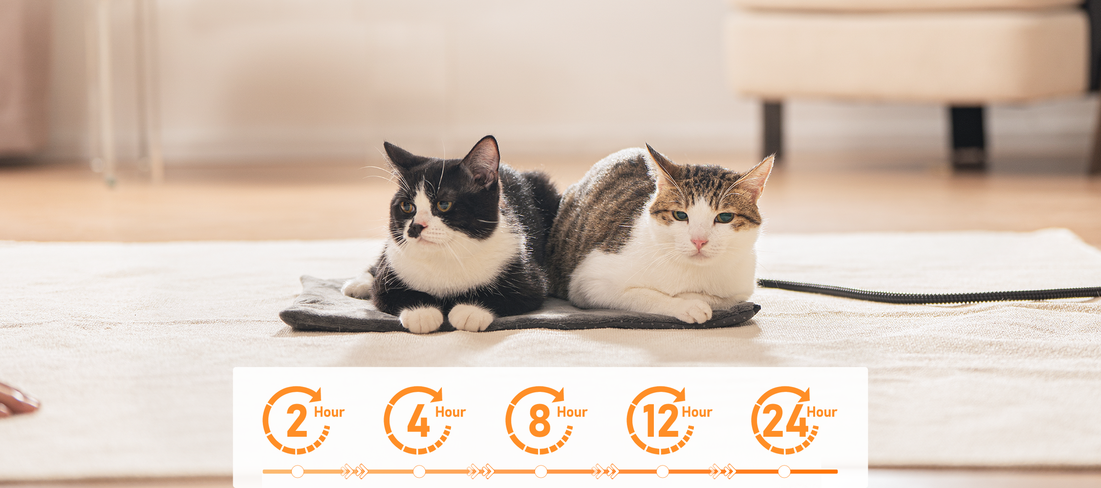 外出中・夜中もしっぽ家族の健康を守るため、5段階のタイマーで快適な温度をキープします。