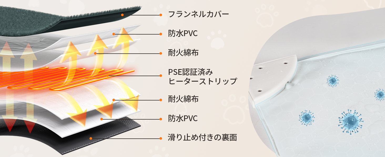 加熱保護回路付き、電熱線は均等に分散され、均一に加熱することができます。しっぽ家族の安全と快適な冬を保証します。