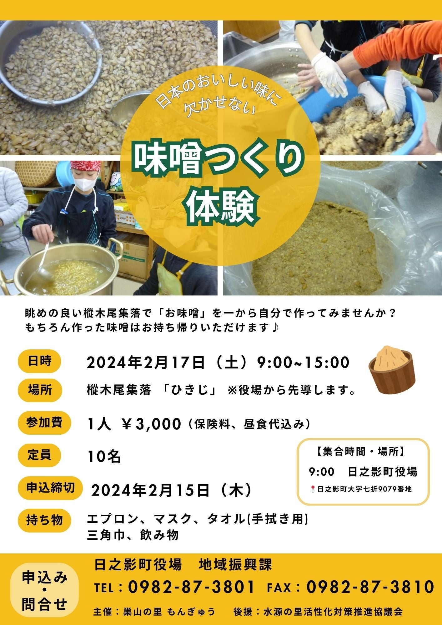 眺めの良い樅木尾集落で「お味噌」を一から自分で作ってみませんか?もちろん作った味噌はお持ち帰りいただけます♪