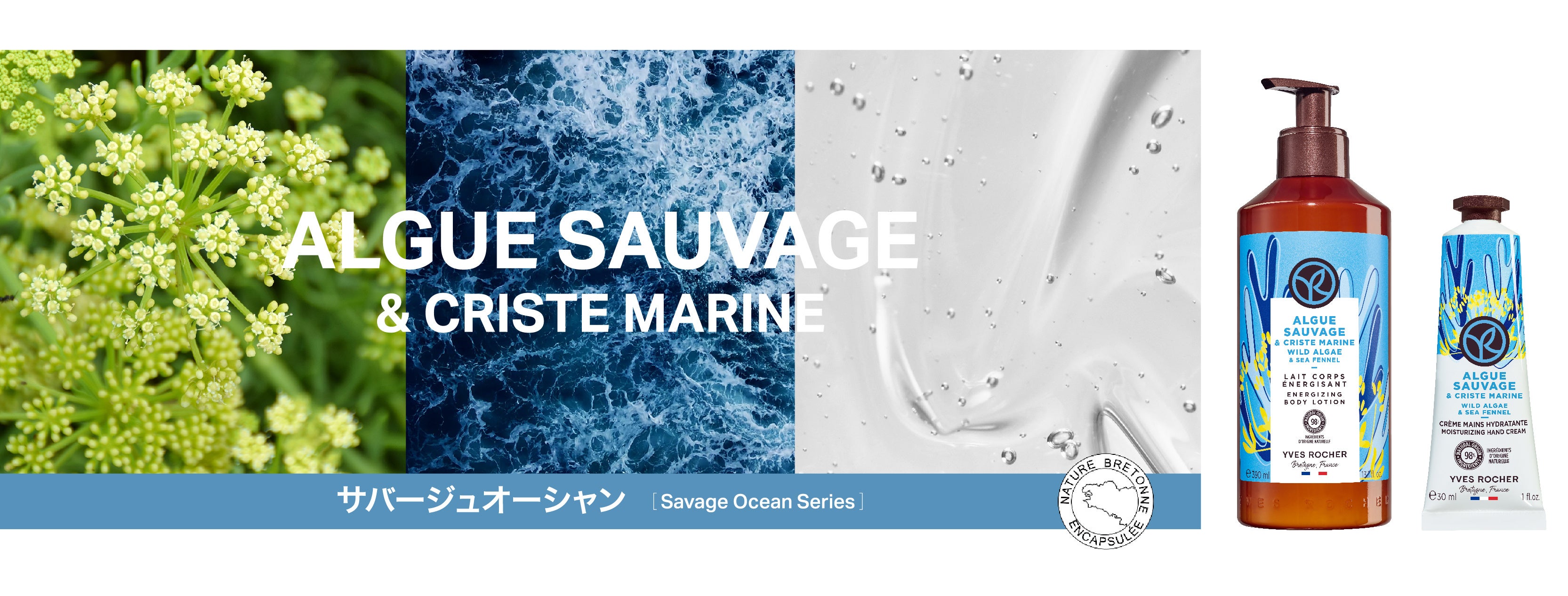 ブルターニュの海の恵みアルギー*4とシーフェンネル*5を豊富に配合した「サバージュオーシャン」シリーズ。荘厳なブルターニュの海岸をイメージした、フレッシュマリンの香り。