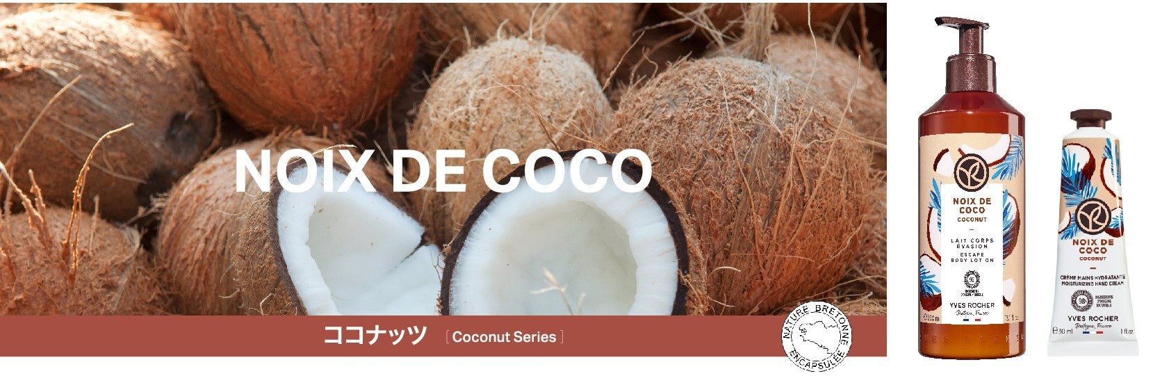 イヴ・ロシェの中でも人気の高いココナッツの香りがシリーズで登場。南国を思わせる、甘くスウィートなココナッツの穏やかでやさしい香りが広がります。