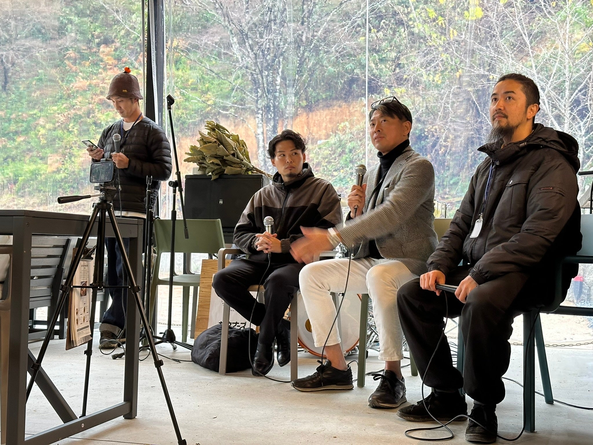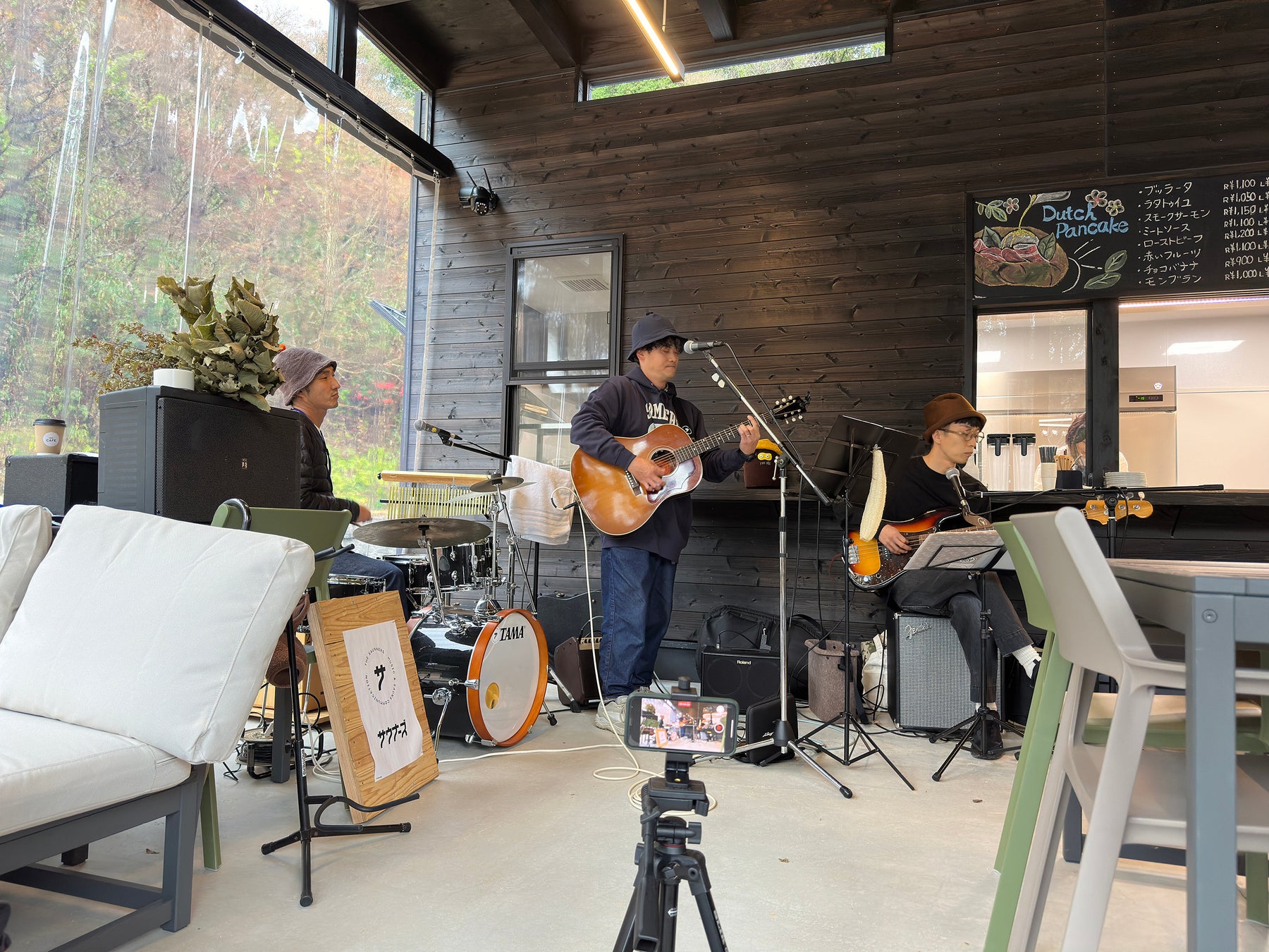オープニングイベントを12月16日(土)、17日(日)におこないました。あいにくの天気でしたが、カフェの半屋外スペースを使用し、マルシェ、演奏ステージ、トークショーなどをおこないました。隣に中庭では、テントサウナなどを張り、今後できるOND PARKのエリアのイメージが出来るよう皆様に施設について知っていただき、楽しめるイベントとなりました。