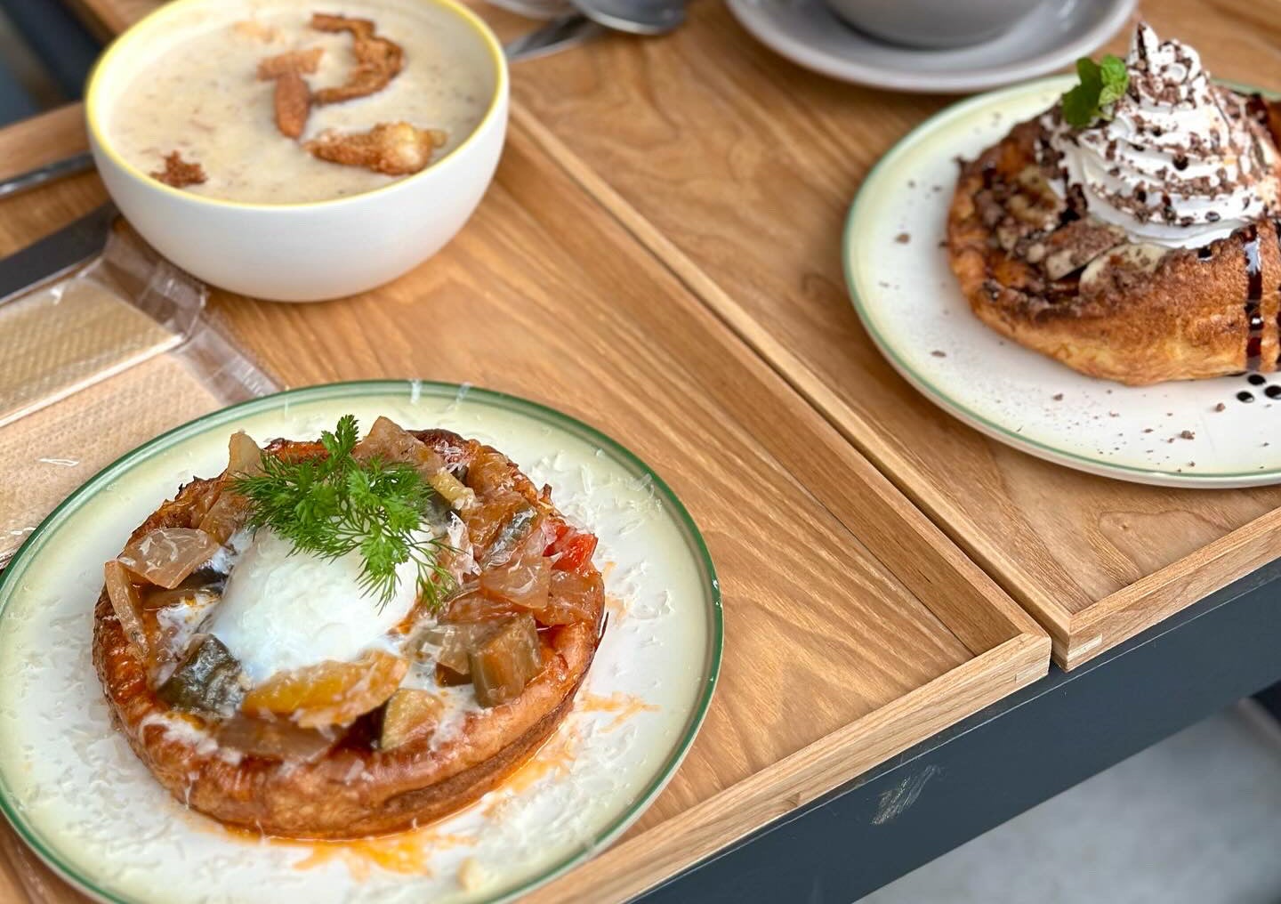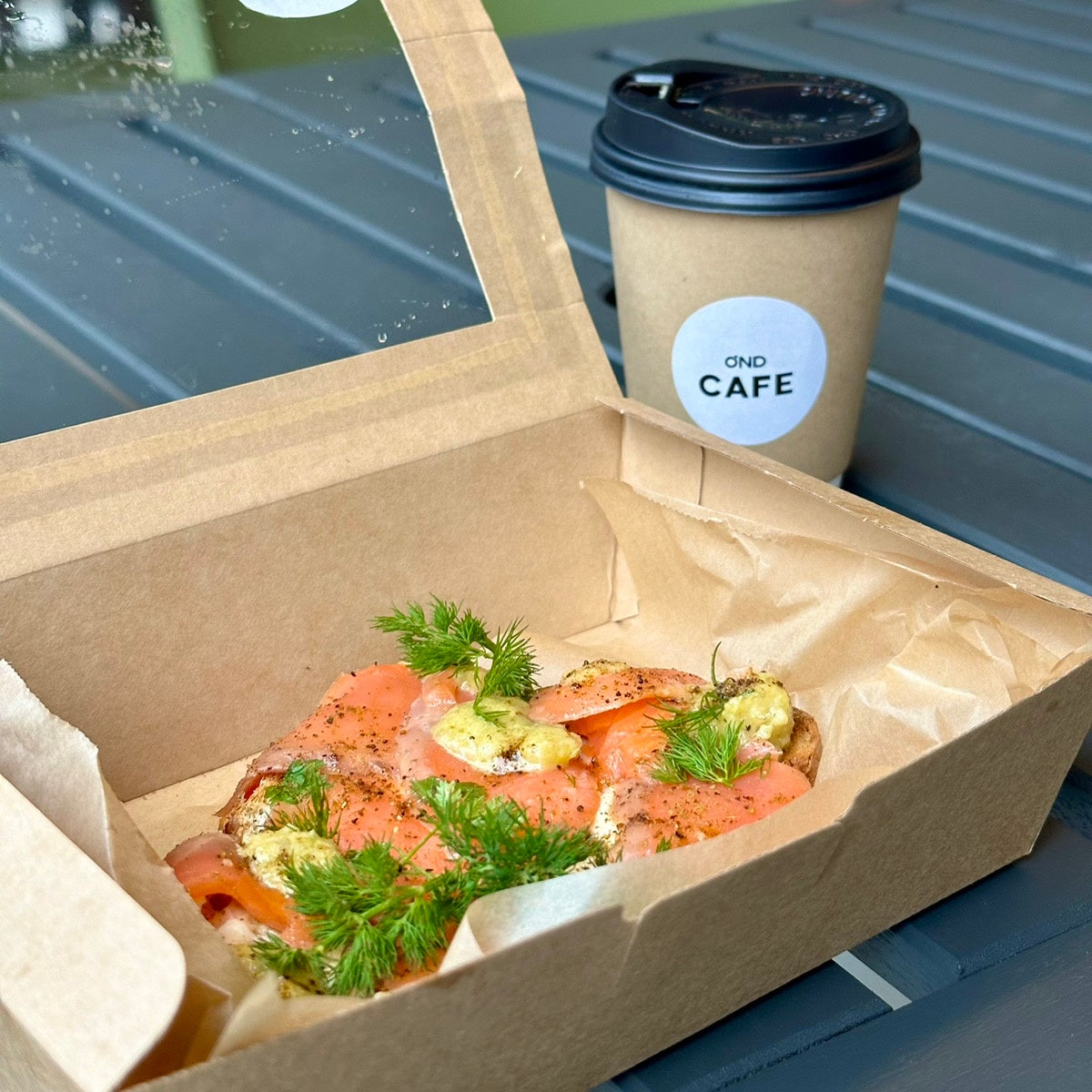 「OND CAFE」では、ダッチパンケーキやオープンサンド、オリジナルブレンドコーヒーやアルコールなど、他では味わえないこだわりのメニューを提供しています。約40席の半屋外席で食べるもよし、OND PARK内でピクニックをしてもよし。食品や調味料などを取り扱うショップも併設した、日常的に通いたくなるカフェです。