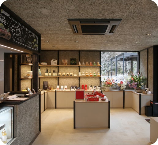 カフェの中には、メニューとしてもご提供しているコンブチャやグラノーラをはじめとした、調味料や食品を中心に取り扱うショップも併設しています。なかなかお目にかかれない厳選した商品を販売しています。