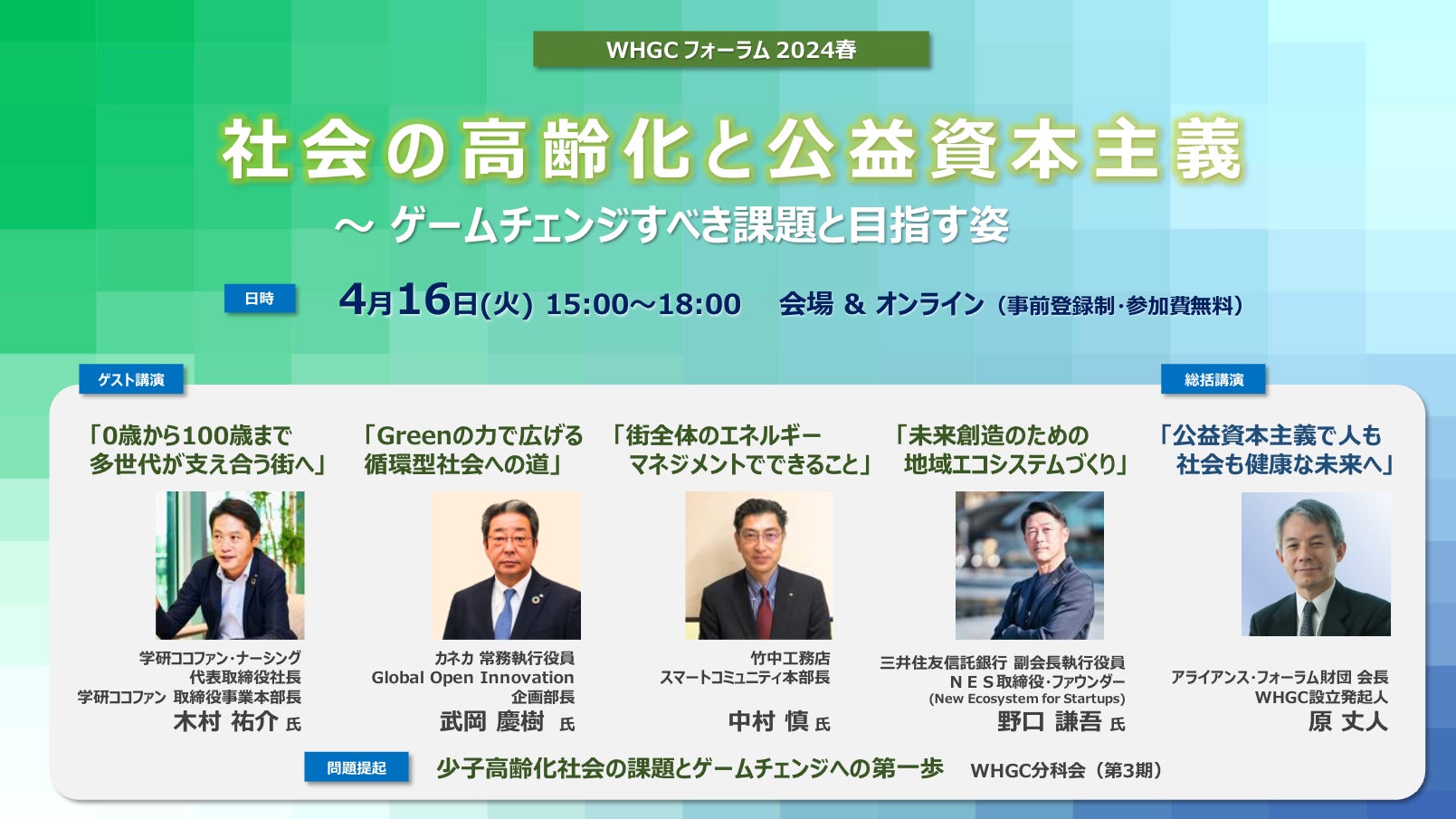 「社会の高齢化と公益資本主義 〜 ゲームチェンジすべき課題と目指す姿」WHGCフォーラム2024春を開催