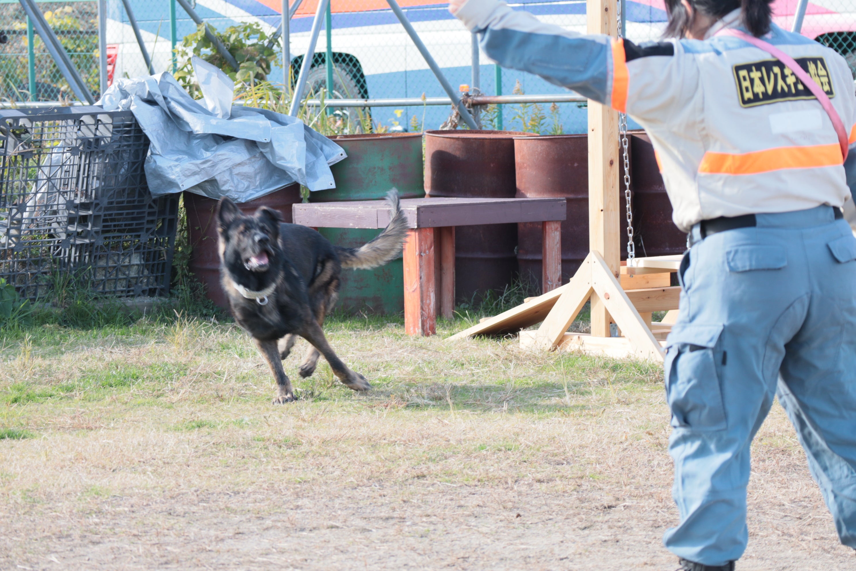 災害救助犬の育成には特殊な訓練を必要としますが、環境は未だ整っていません。専門的な訓練ができる施設は少なく、全国各地に赴きトレーニングに励んでいます。そのため、平時から多くの時間と費用を必要とします。日本レスキュー協会では2頭の災害救助犬が活動し、6頭の候補犬が訓練に励んでいますが、厳しい条件をクリア出来る犬は約4割です。 今回、普段とは異なる場所での訓練が可能な機会となり、育成においても貴重な機会です。