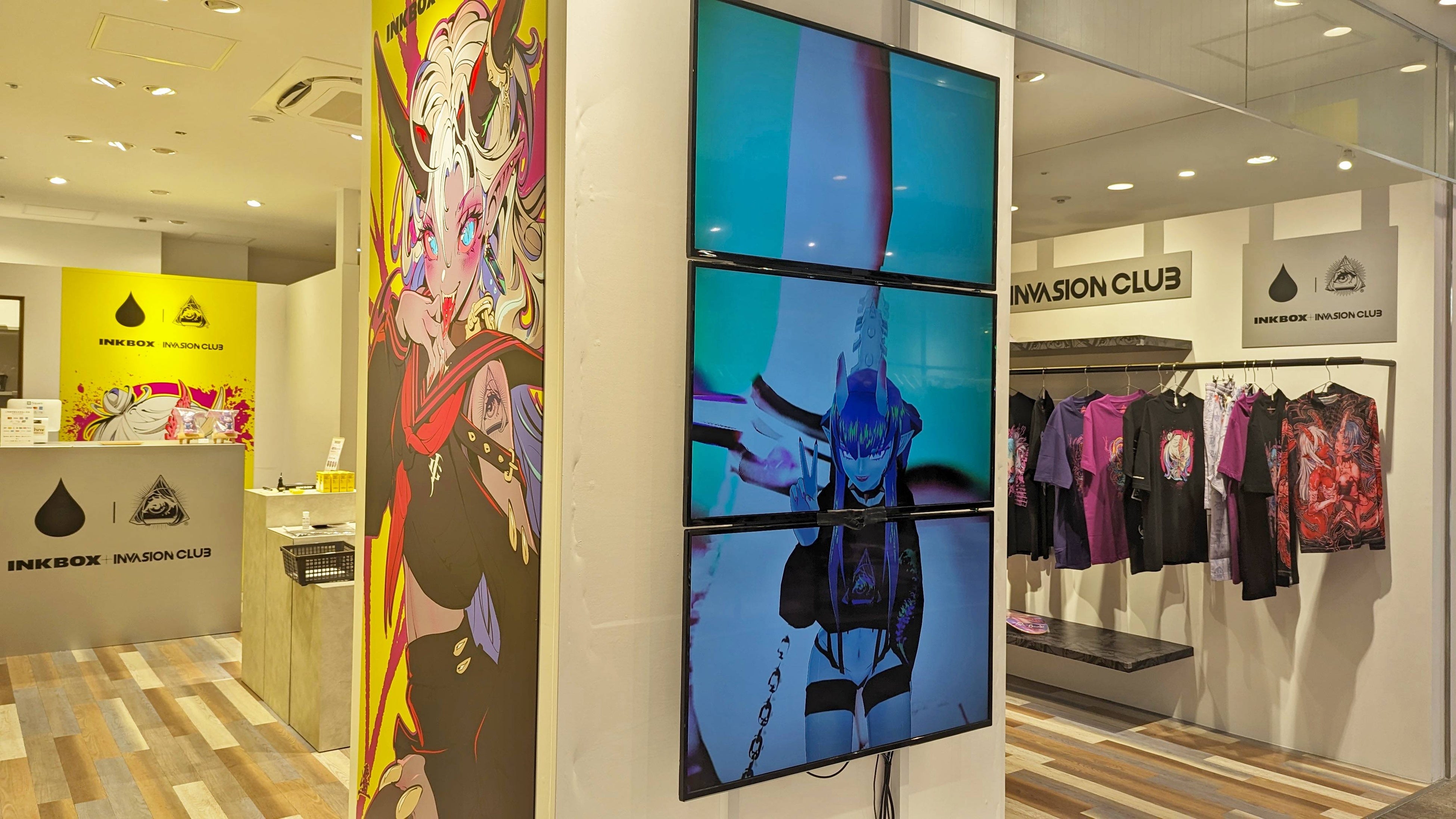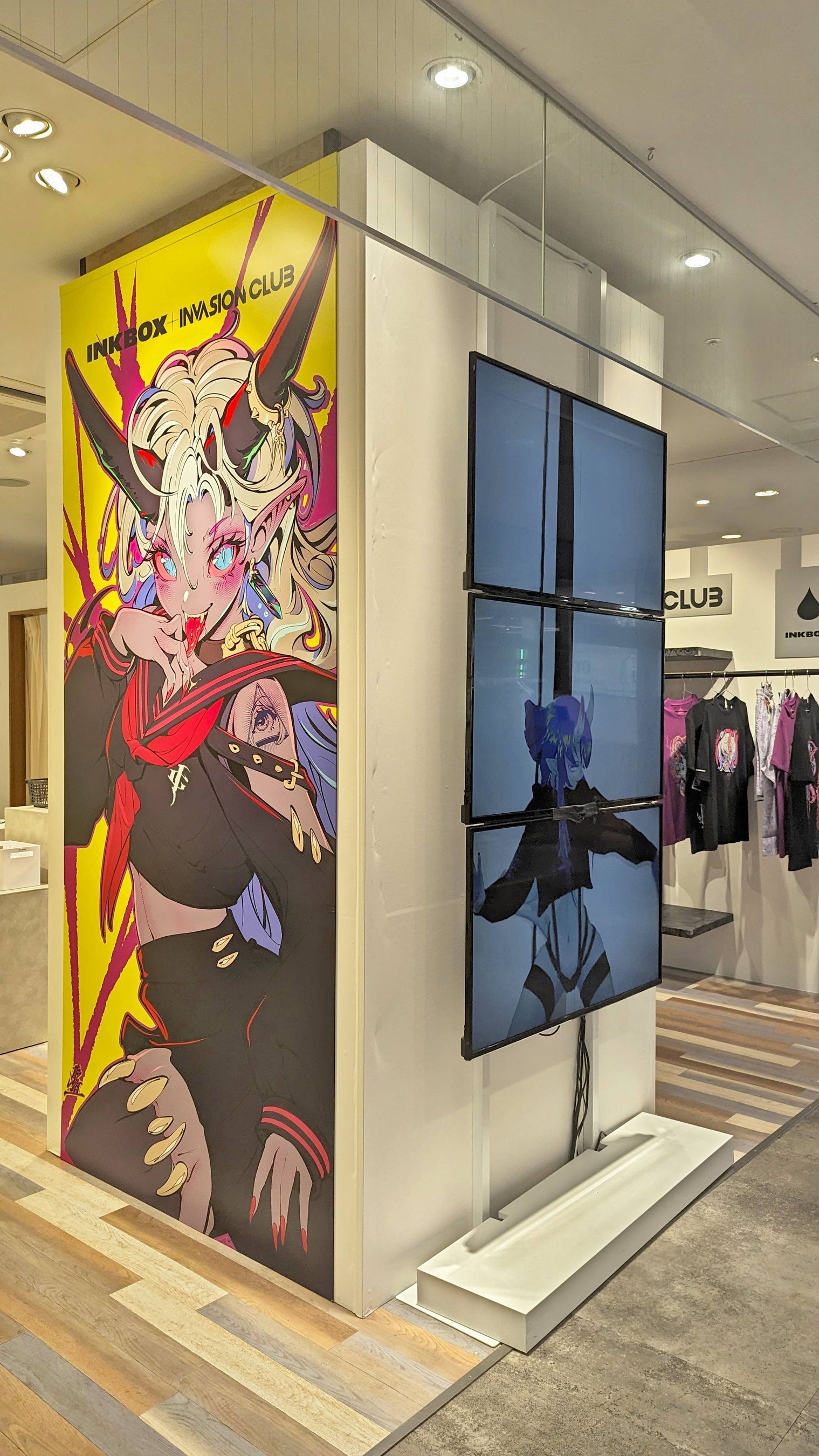この機能は、原宿のアパレルショッピングセンター『ラフォーレ』に設置中であり、タトゥー愛好家に向けるINKBOX / INVASION CLUBの店舗前に展示をしております。この3Dデジタルサイネージに近づくと、メインキャラクターの『デヴィ』が現れ、ポーズを取りながら一緒に写真撮影をすること可能です。現在から2023年11月末まで一般公開されていますので、東京の渋谷・原宿・表参道付近を訪れた際は是非ラフォーレにお越しいただき、AKA Virtualの「3Dデジタルサイネージ」をご体験ください。