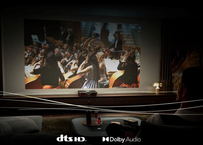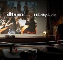 また、映画館でも使用されている、最先端の映像投影技術「ALPD® 4.0」を用いることで、2500ANSIルーメンの高輝度を実現し、映像品質の極限を追求しました。音響面においても、サラウンド音声のフォーマットであるDOLBYとDTSに対応したことで、臨場感のあるサウンドを、追加の機器を揃えることなく楽しむことができます。