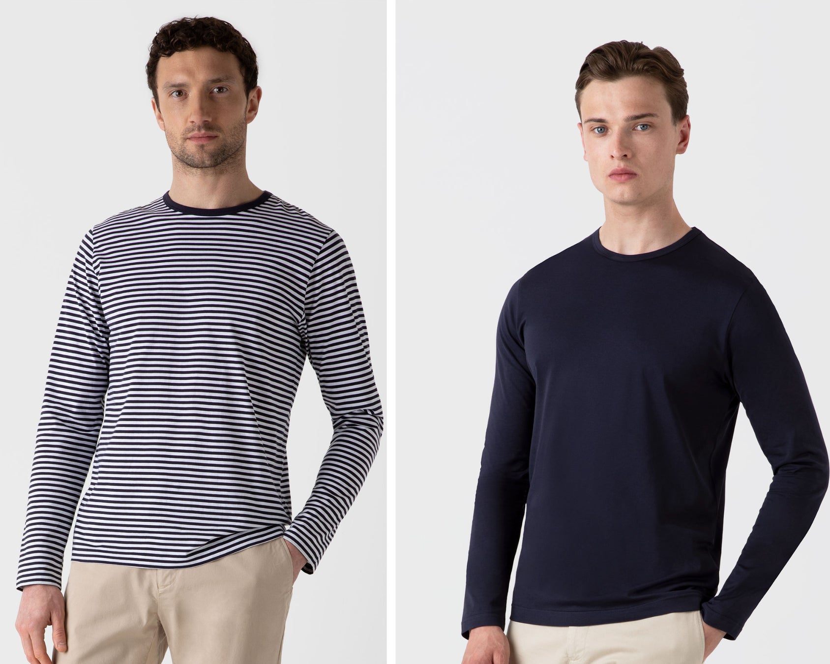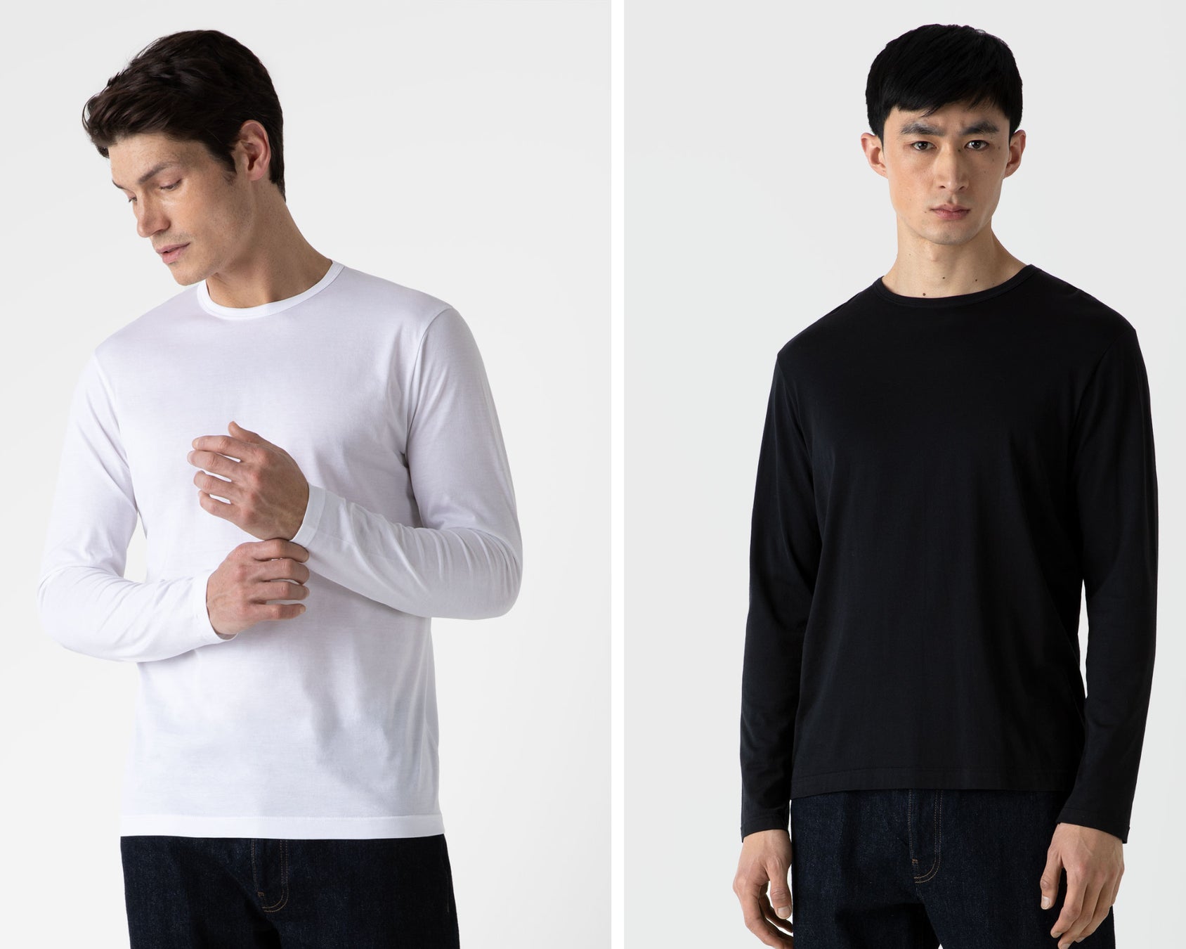 1900年代初頭から、<サンスペル>を象徴するクラシックTシャツのロングスリーブは、抜群の柔らかさと着心地の良さを生み出すスーピマコットンを使用し、英国 ロングイートンの<サンスペル>自社工場で丁寧に作られています。ミニマルなスタイルとシンプルなデザインが特徴の定番アイテムです。