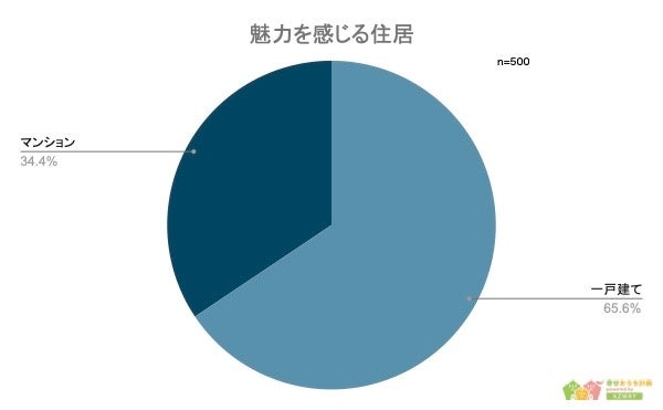 続いて「一戸建てとマンションのどちらに魅力を感じるか」について聞いたところ、「一戸建て」が328人(65.6%)、「マンション」が172人(34.4%)という結果になりました。6割以上の人が、「一戸建て」に魅力を感じていることがわかります。