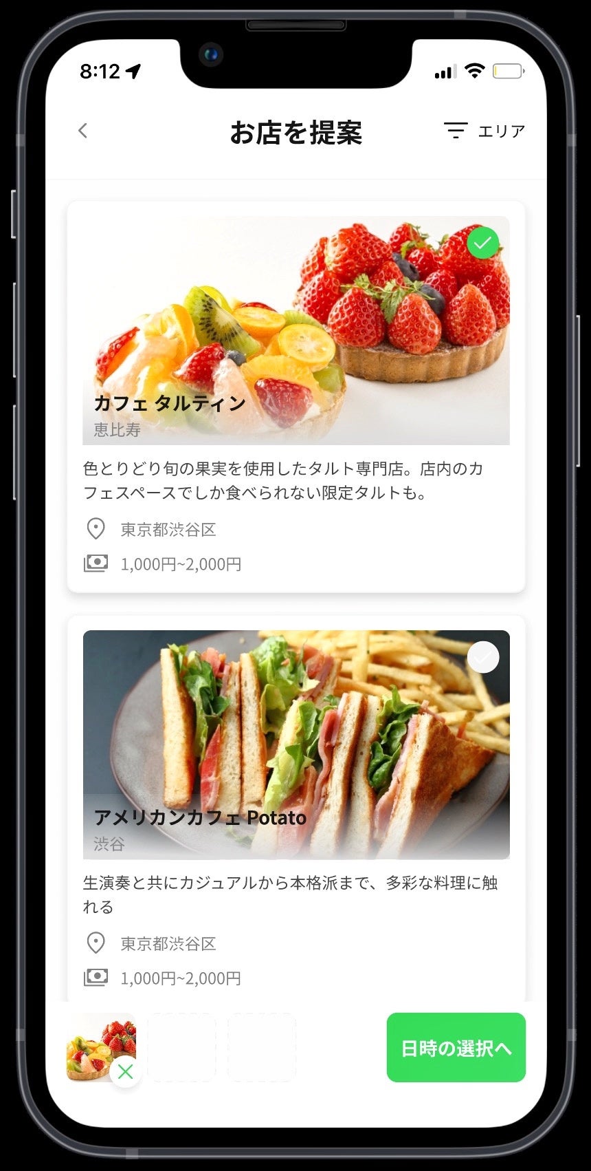 そんな方向けに、アプリ内エリアごとにおすすめの飲食店を掲載しているので、待ち合わせ場所の決定が安心かつスムーズです。