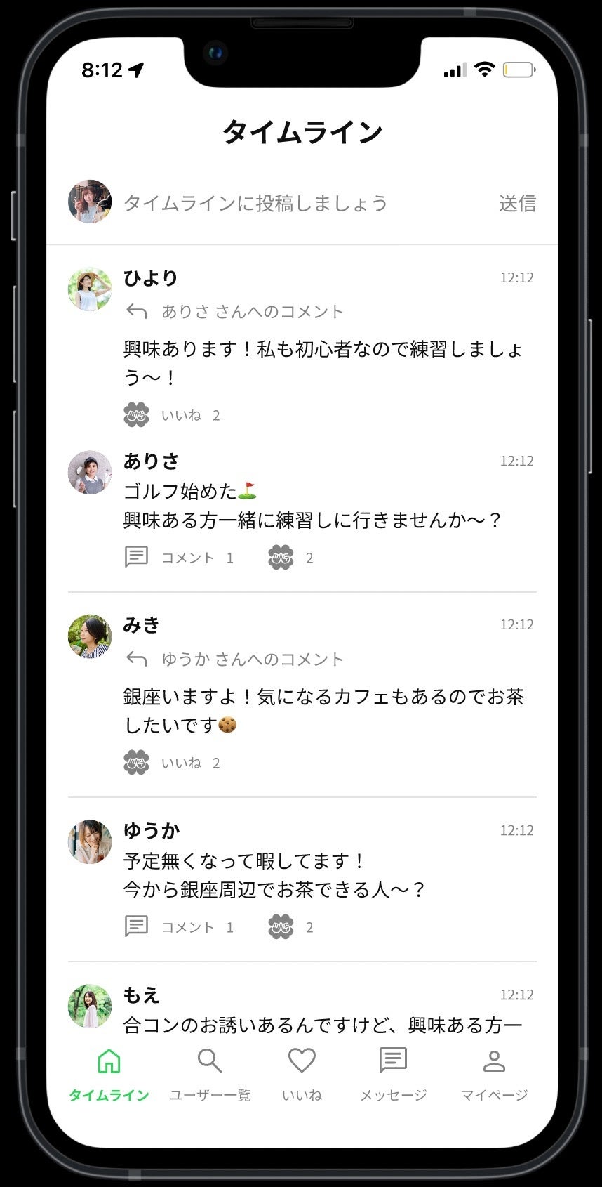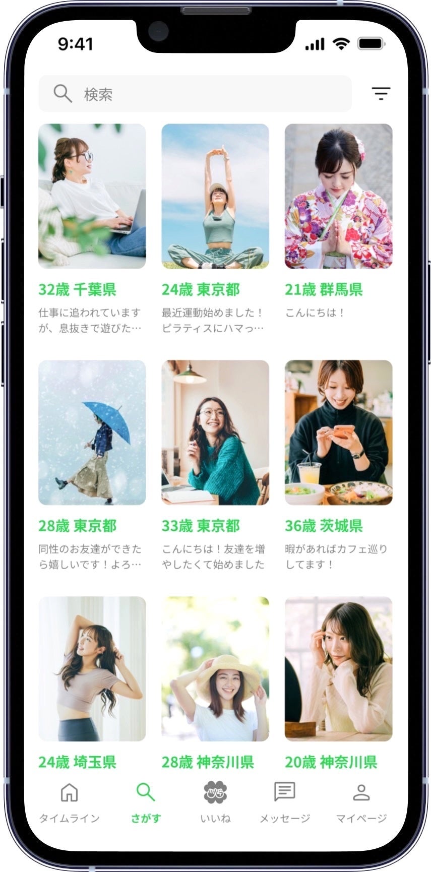 ご利用シーンは、一緒にカフェ巡りやライブ参戦、ゴルフやスポーツの人数合わせ、といった趣味友探しに使うも良し!合コン婚活、出会いの場への戦友探し、ママ友探しに使うも良し!繋がり方は様々です。