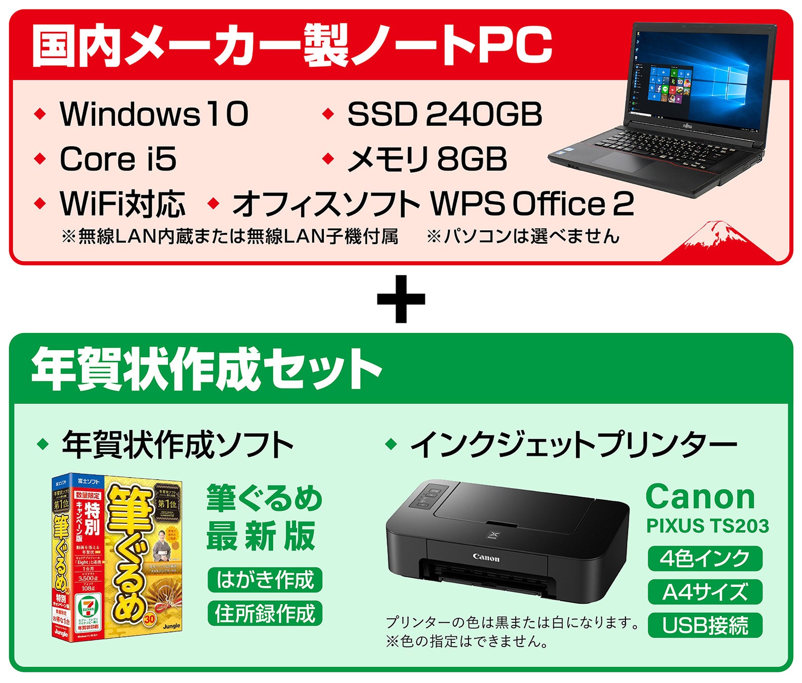 【32,800円】パソコン・プリンター・筆ぐるめなど年賀状作成に便利な一式が揃う特別セットを発売開始。